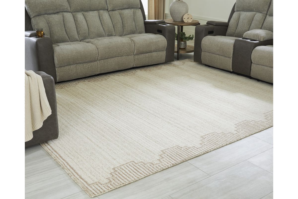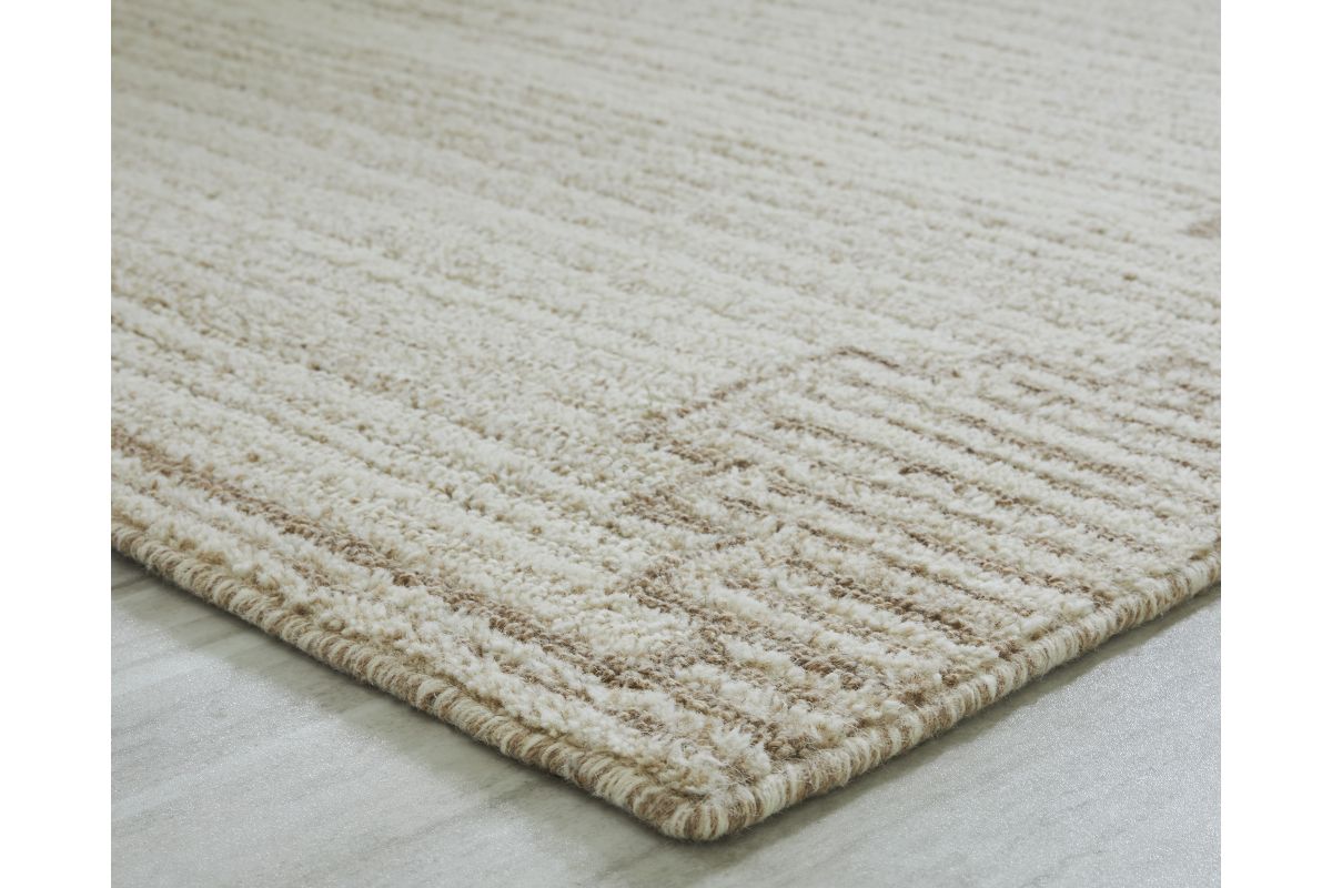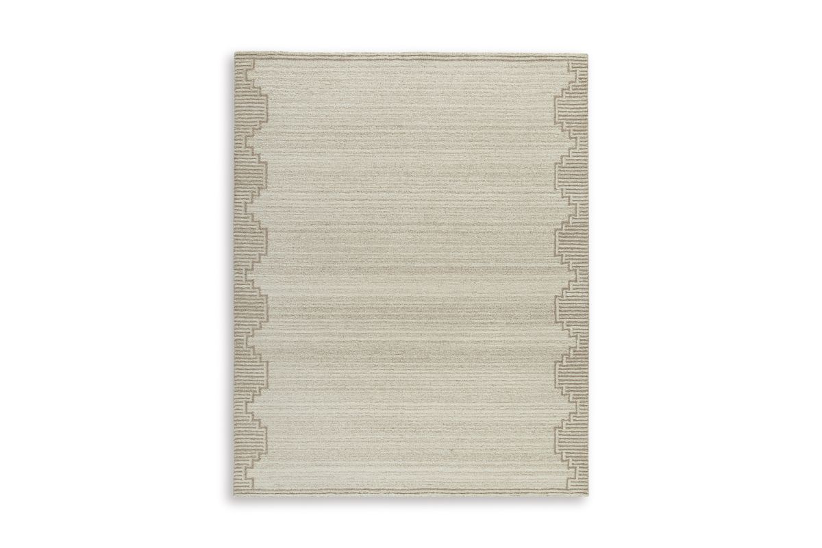 Dress up any floor with the tastefully approachable design of this rug. Its distinctive stepped border pattern, rendered in versatile neutrals, creates a subtly eye-catching look that brings modern elegance to any casual space. Crafted from wool with a generous pile, this rug doesn't just stun with its good looks—it also delivers an indulgent feel underfoot.
