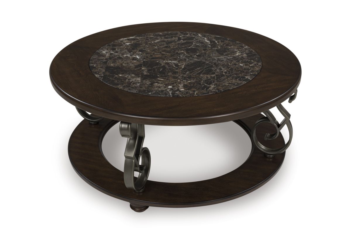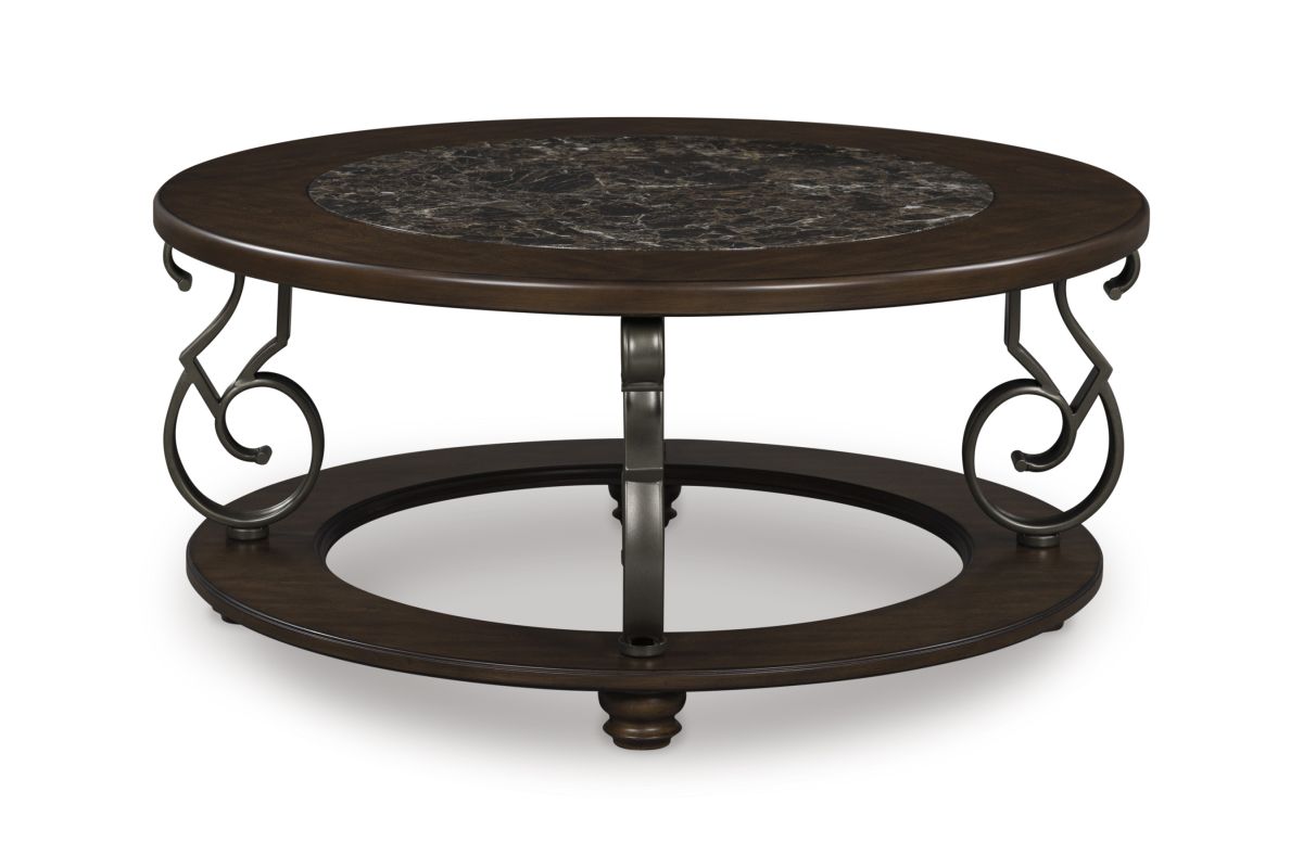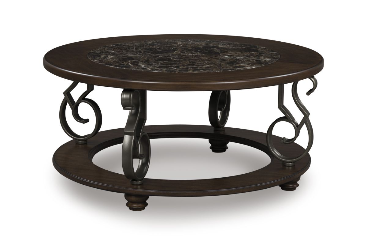 This coffee table is nothing short of stunning. A rich, warm brown finish exudes opulent elegance, while ornate metal legs add a touch of timeless sophistication. It's perfect for displaying your delicious decor in grand style. Assembly Required.