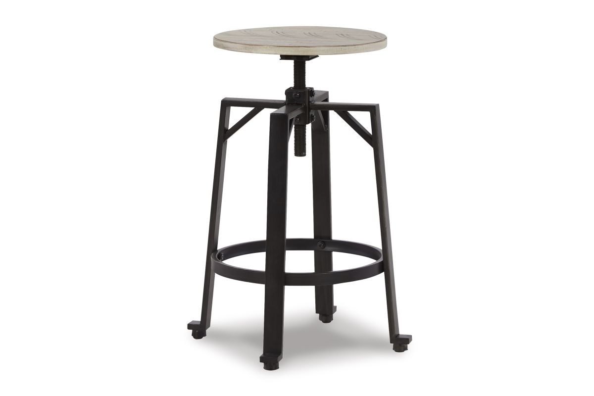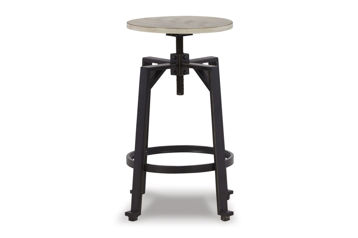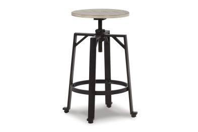 Add a rustic-yet-refined look to your home with this two-tone swivel stool. Its distressed whitewash wood seat with black metal frame conveys an inviting farmhouse style. This charmer easily moves from counter to pub height, giving you and your guests the freedom to sit comfortably while adding a casually cool industrial vibe to your table. Assembly required.