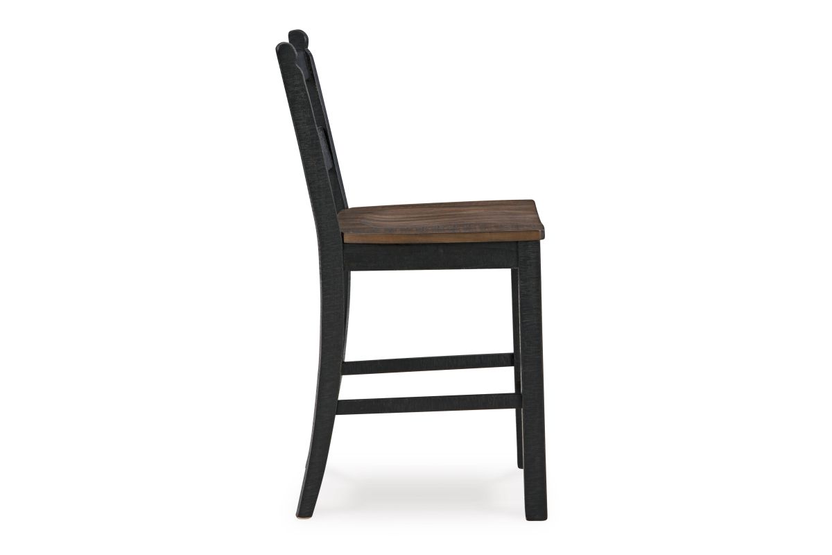 This counter height bar stool serves up the best in cottage styling. Its contoured seat keeps you comfortable while chatting over coffee and bantering over board games. The two-tone finish, versatile enough for many casual aesthetics, is a charming choice. Assembly required.