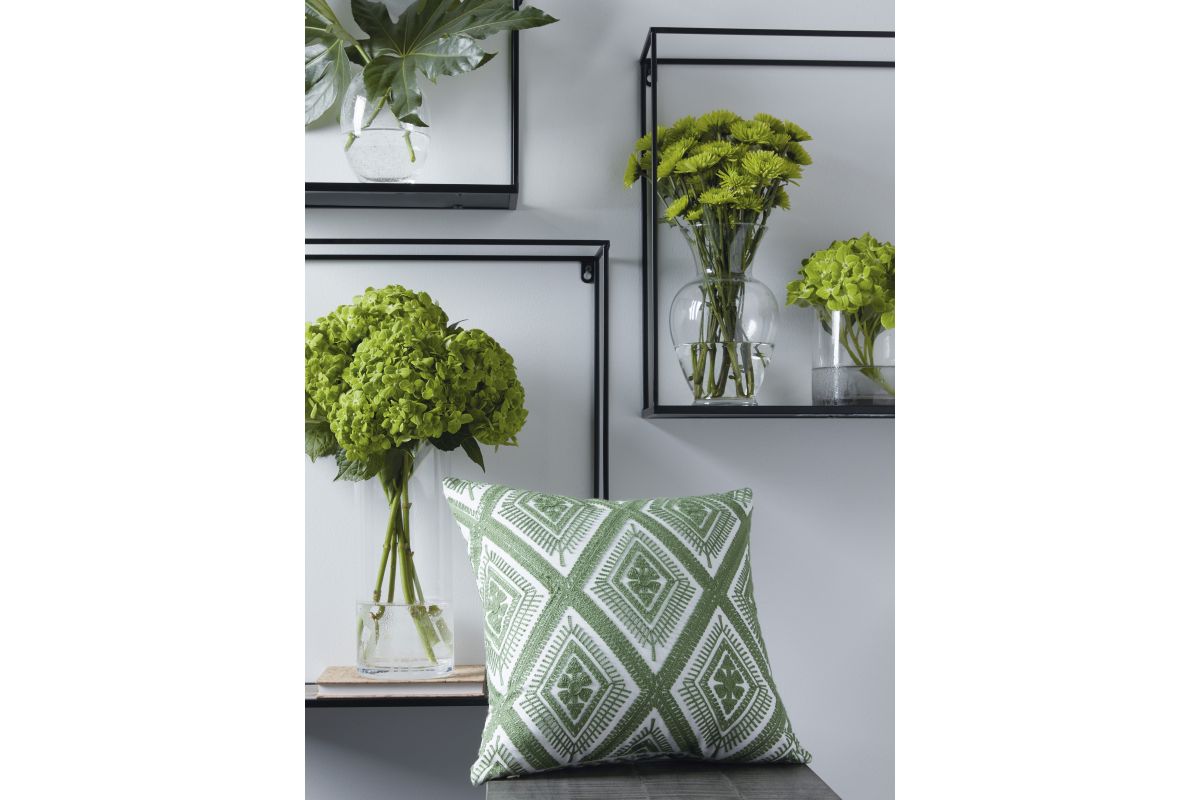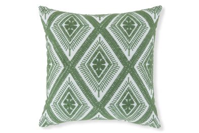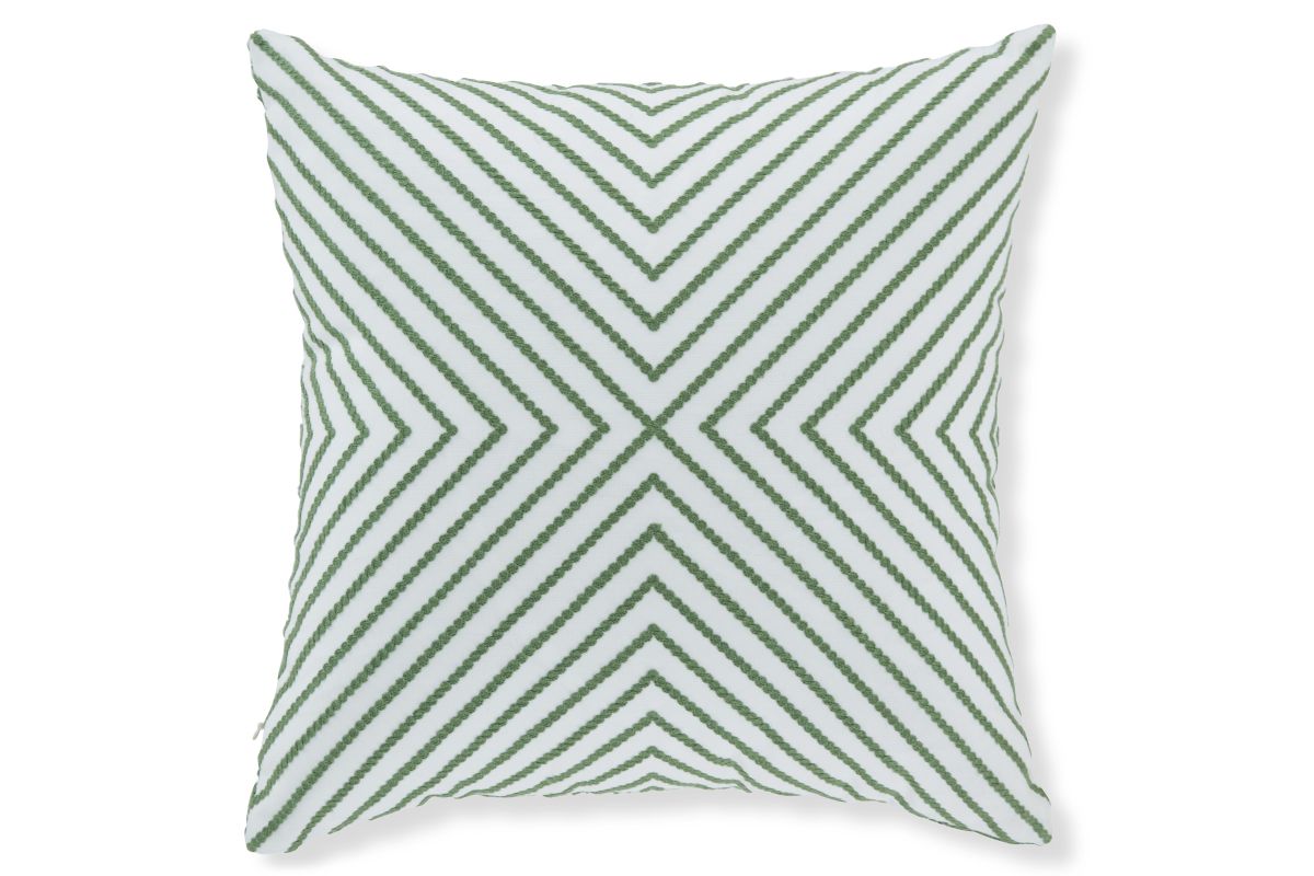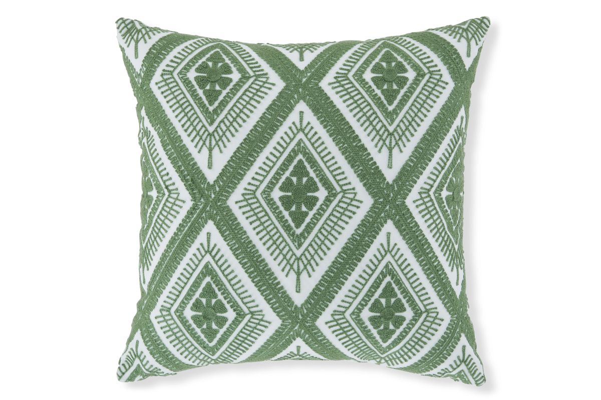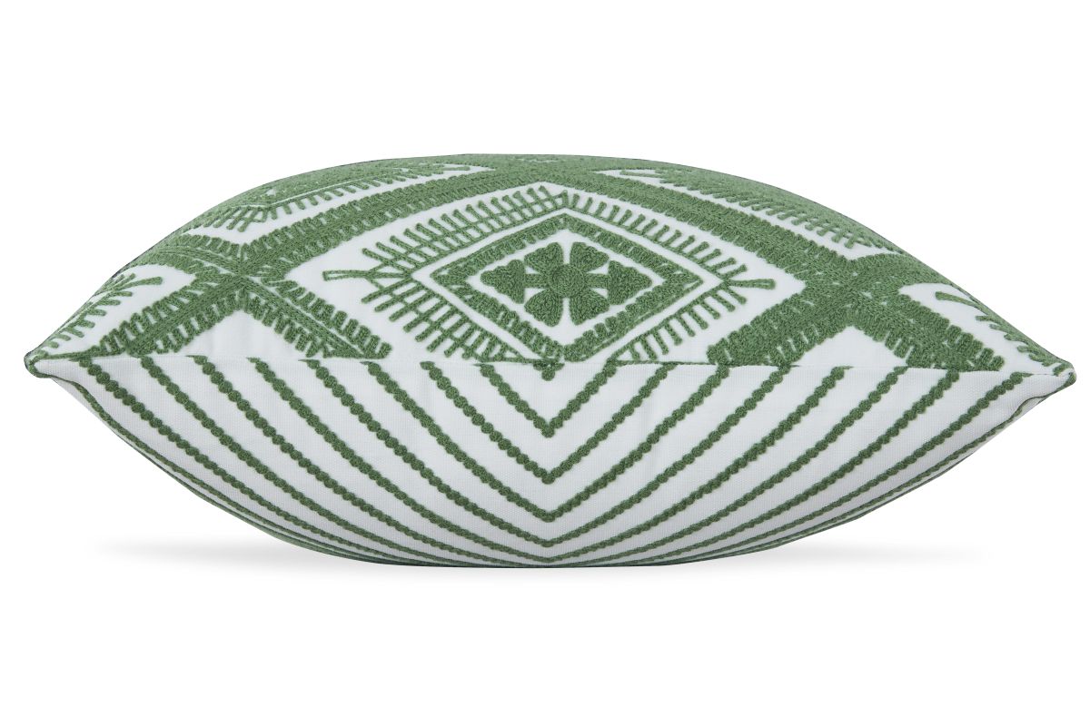 Add a splash of vibrant color and radiant style to your furnishings with this accent pillow. Its diamond design in green and white adds an eye-catching scheme to indoor/outdoor benches, chairs and sofas.