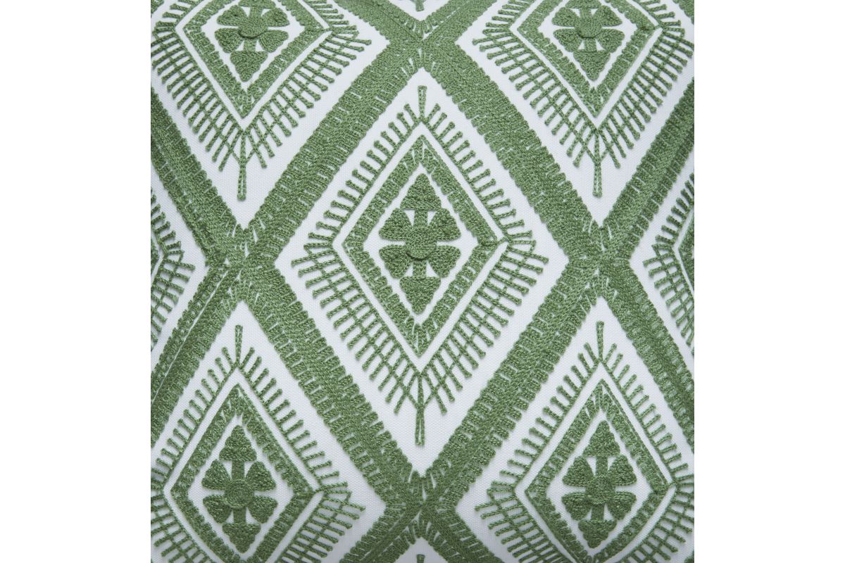 - Embroidered diamond design in green and white