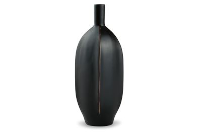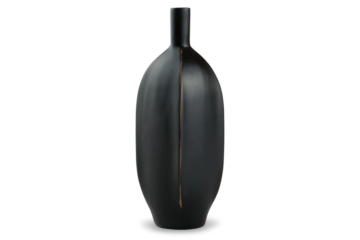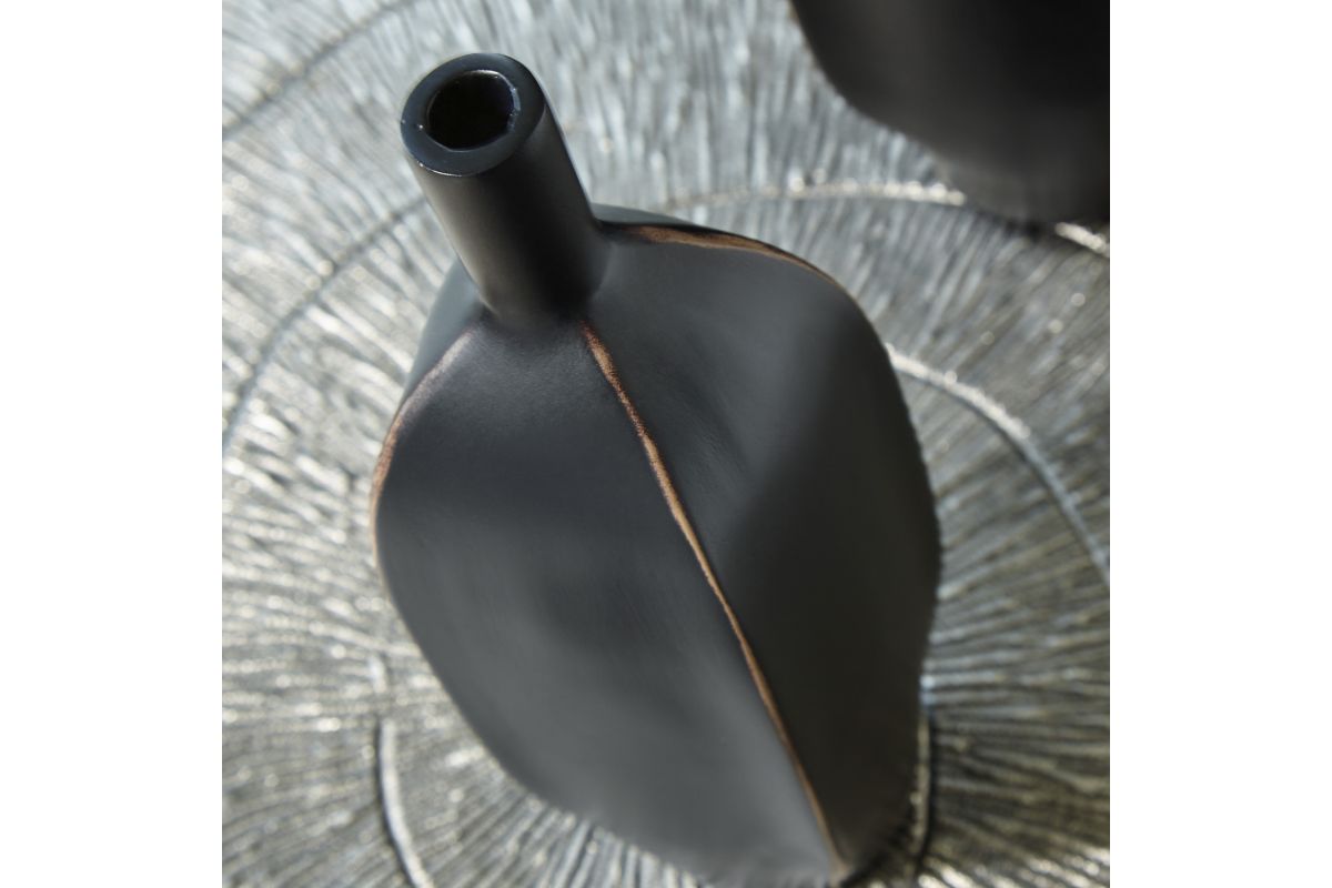 Impress with the simply sleek stylings of this vase. A black finish coats the piece, with a brown rub on the corners acting as a subtly eye-catching design element. What a chic addition to your bookcase, mantel or tabletop.