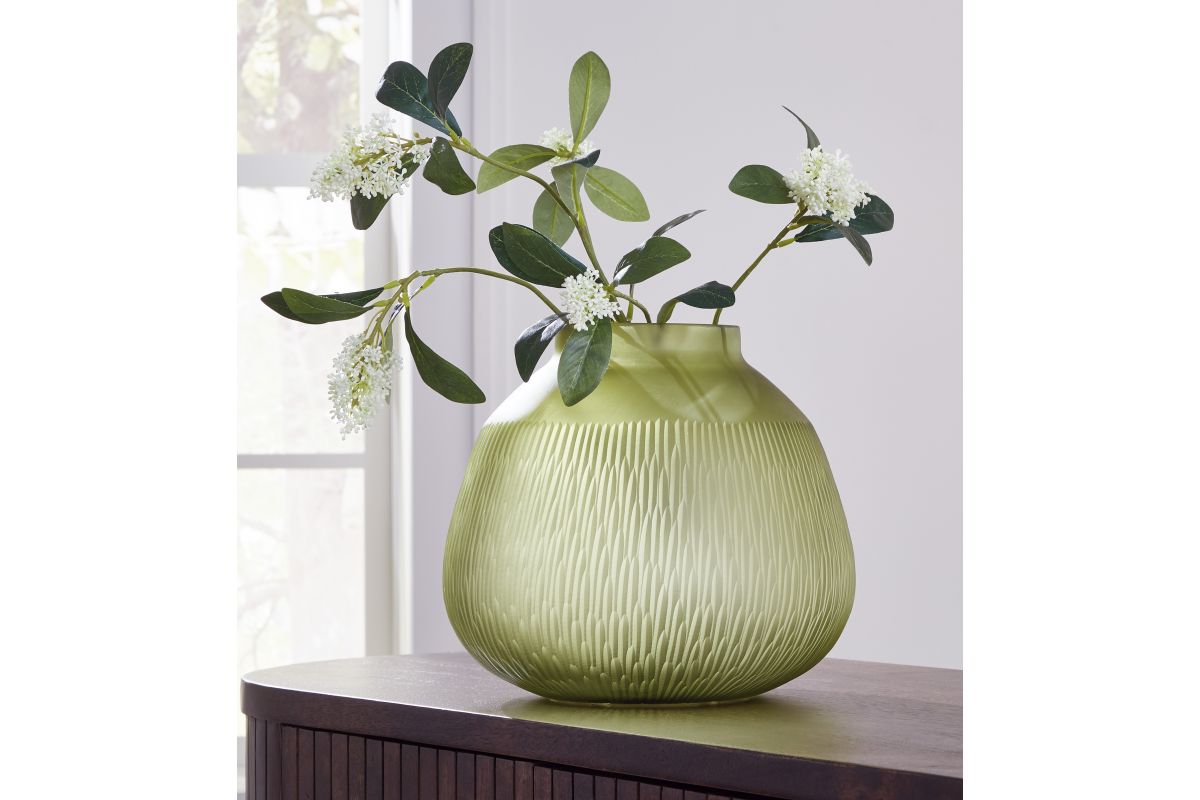 Creating a contemporary haven is all in the details. With this vase, you can keep your elevated aesthetic consistent from indoors to out. Its luxe green color brings a touch of brightness to your tabletops and shelves. Take on-trend design one step further by adding biophilic details like faux greenery and flowers.