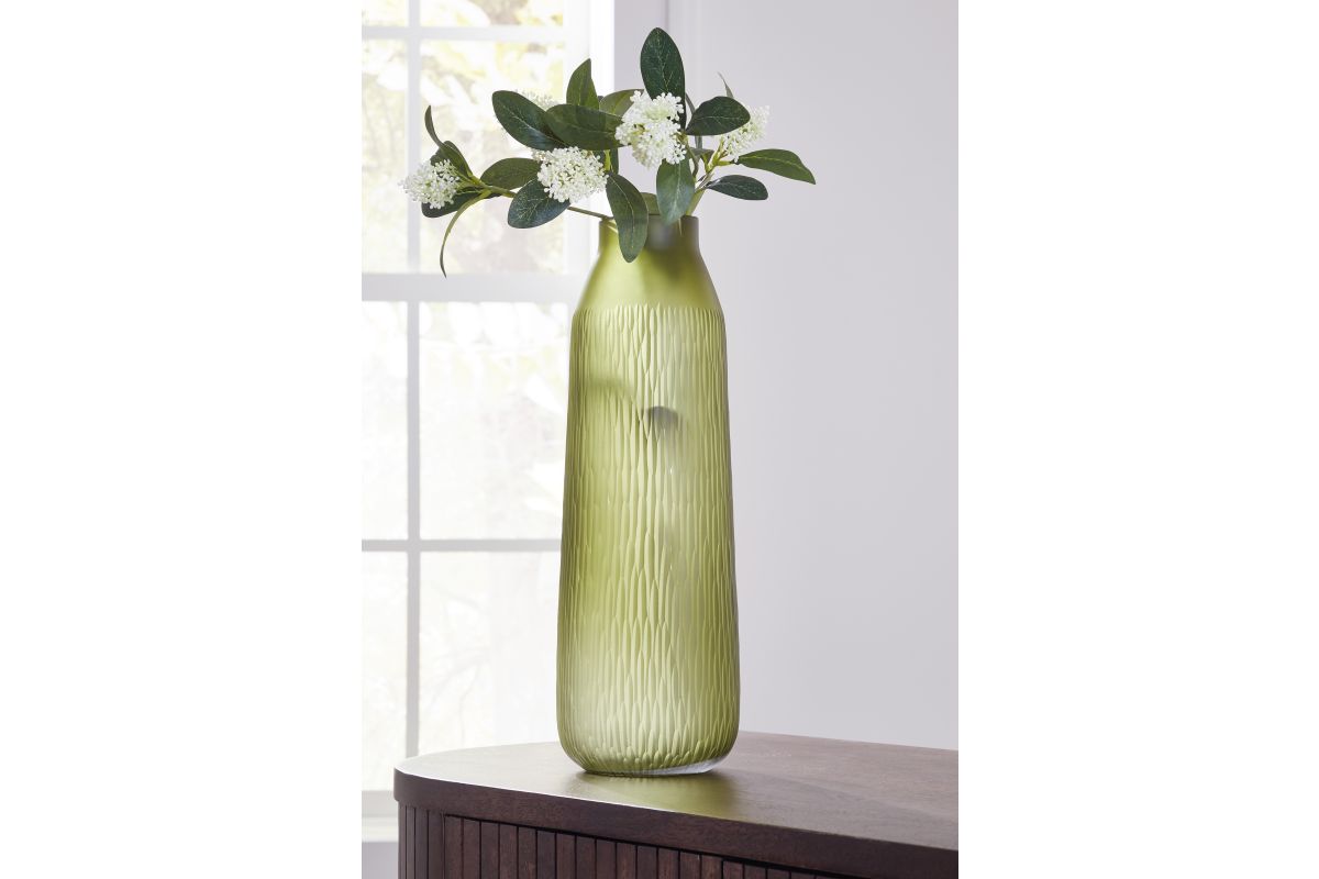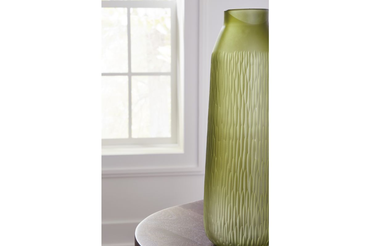 Creating a contemporary haven is all in the details. With this vase, you can keep your elevated aesthetic consistent from indoors to out. Its luxe green color brings a touch of brightness to your tabletops and shelves. Take on-trend design one step further by adding biophilic details like faux greenery and flowers.