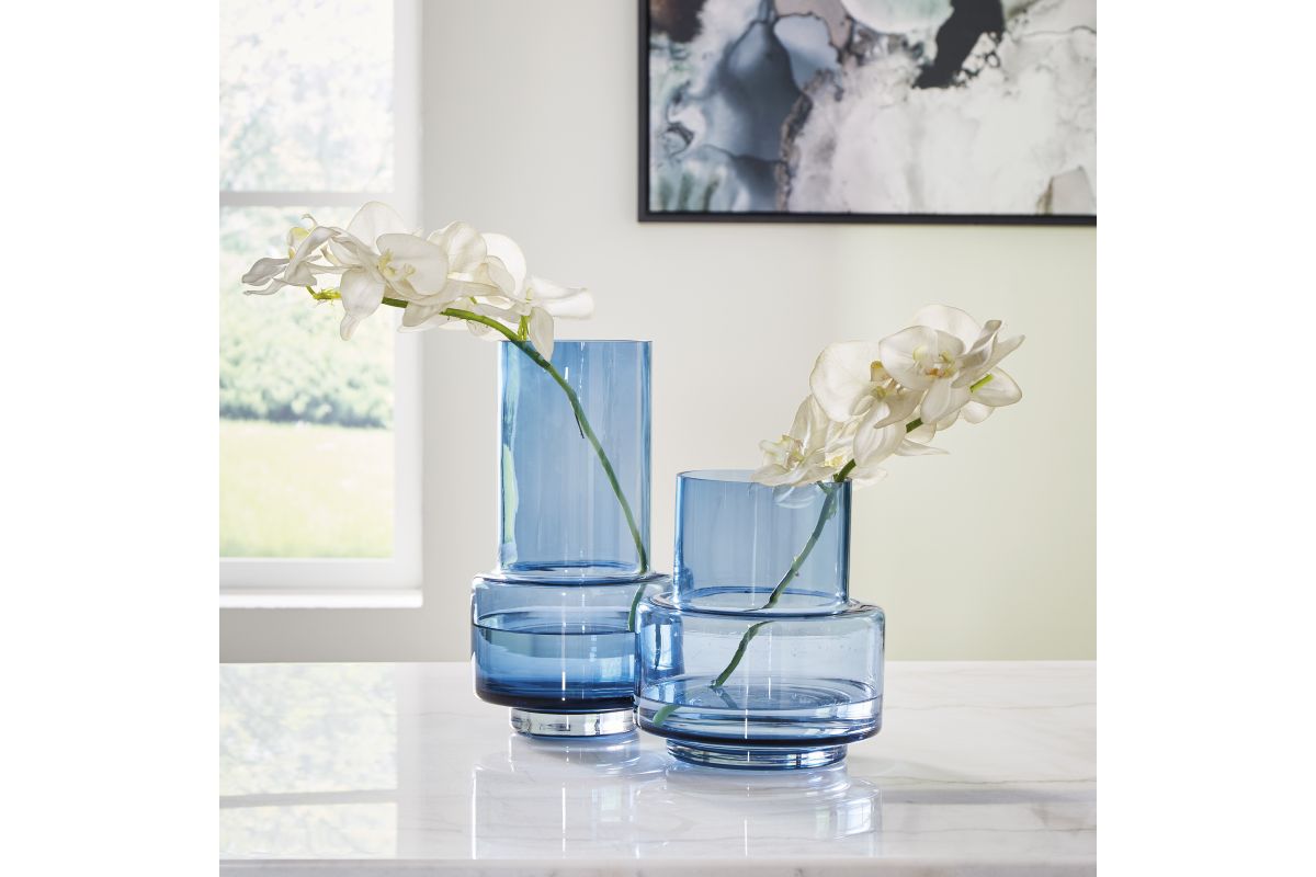 Bring a subtle pop of color to indoor and outdoor centerpieces with this vase. Its long, slim neck leaves plenty of room for your favorite florals or faux greenery. In a dark blue hue, this accent piece keeps your space looking contemporary cool.