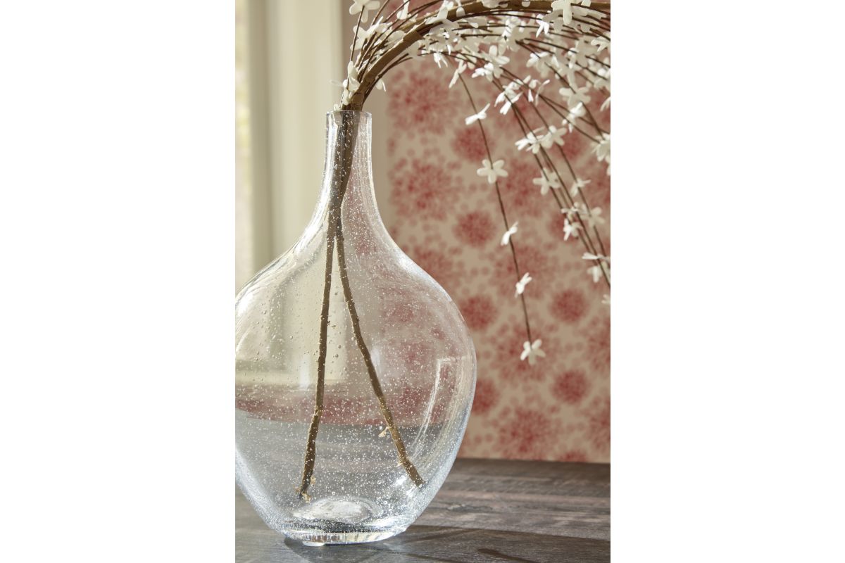 Infuse your shelf, mantel or tabletop with casual charm. Crafted from clear seeded glass, this vase effortlessly captures the essence of weathered beauty. Whether it's indoors or outdoors, this vessel is enchantingly simple unadorned or filled with your favorite florals.