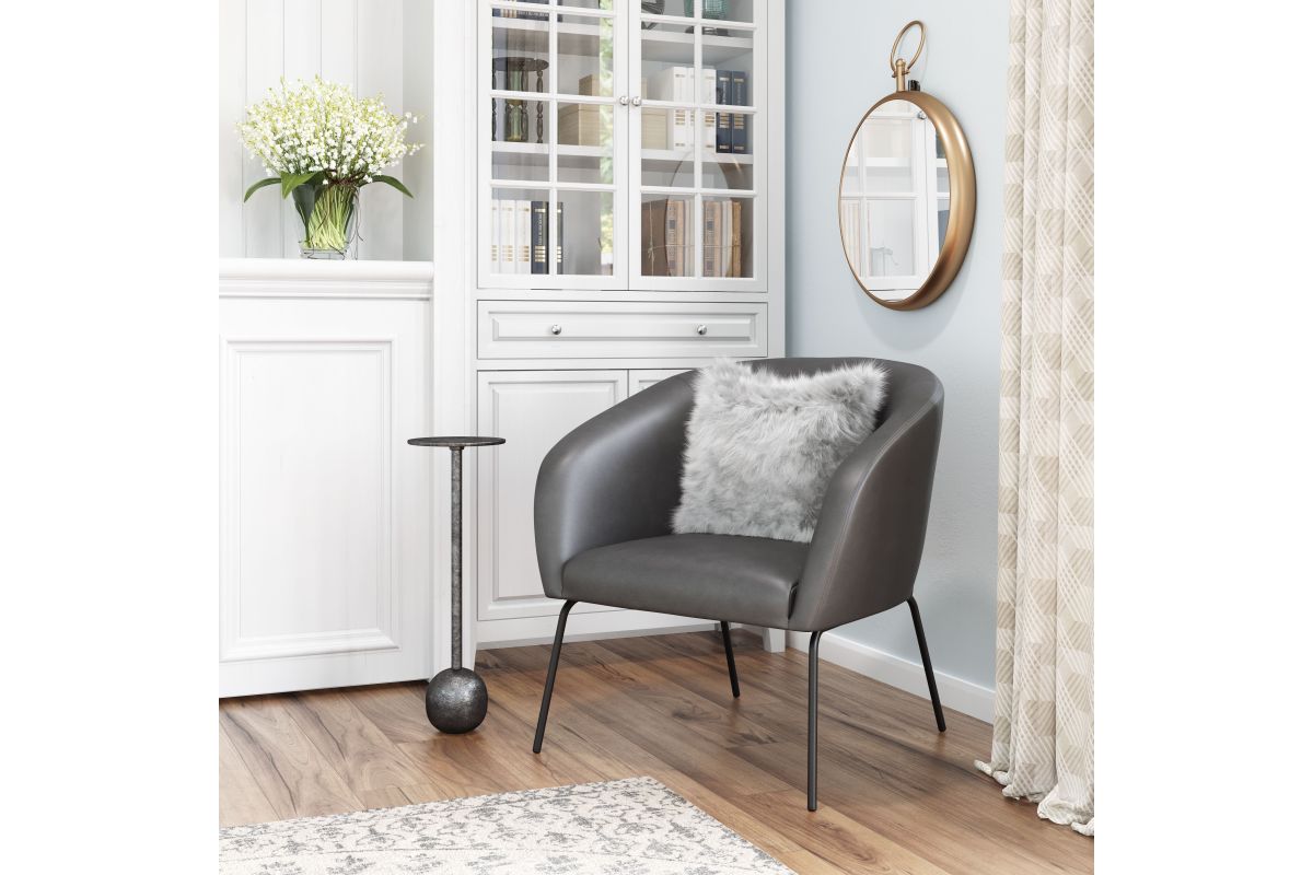 The Quinten Accent Chair is covered with a vinyl and sits on powder coated steel legs. This piece is the perfect boho chic, deco retro addition to any space, home or hospitality. Assembly not required, , , , ,