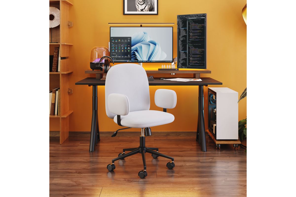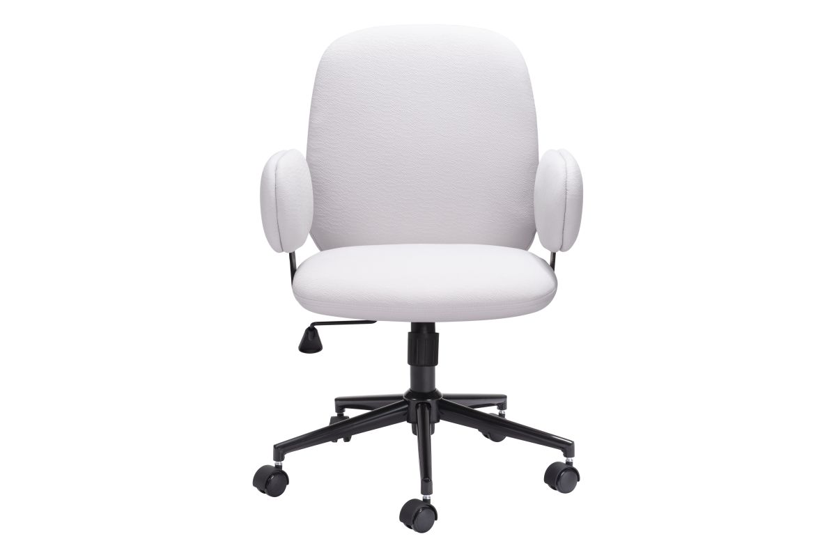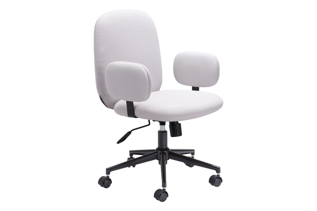 The Lionel Office chair has polyester-wrapped cushions and arms with a height-adjustable rolling base. It's subtle modern mixed with boho shape makes it look great in any home office or corporate headquarters. Assembly required.