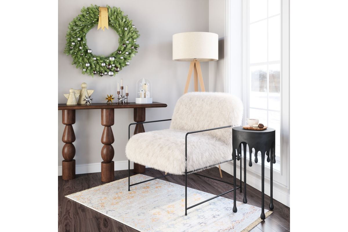 Introducing the Pelut Accent Chair, a masterpiece of contemporary design that effortlessly elevates any space, from upscale hotel lobbies to cozy living rooms. Wrapped in a luxurious shearling-like fabric, this chair invites you to experience a delightful texture that's as visually striking as it is comfortable to the touch. The Pelut Accent Chair's impeccable craftsmanship is evident in its robust steel frame, ensuring durability while complementing the fabric's plushness. Assembly required.
