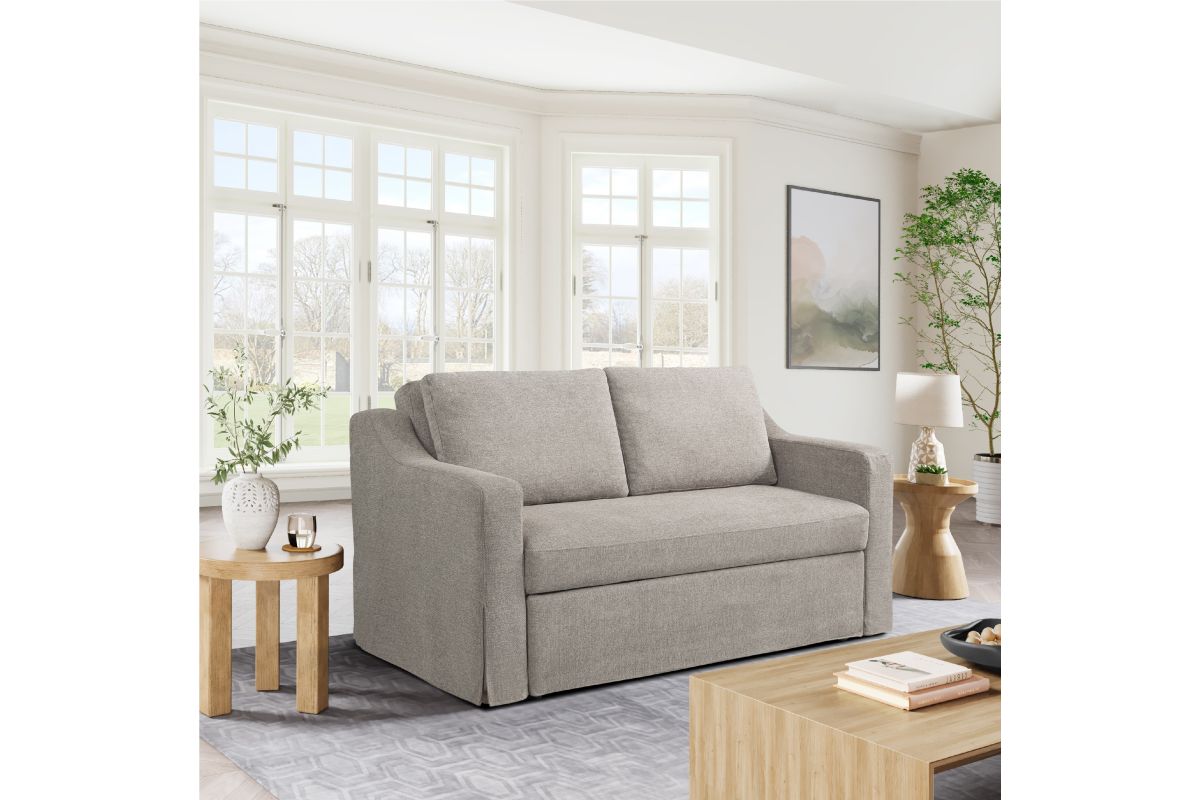 Experience versatility and comfort with the Serta Harvard Convertible Loveseat. This multi-functional piece effortlessly transforms into a lounger, chaise, sofa, or full-size bed to suit your needs. It features durable rubber wood legs, pocket coils, and high-density foams for exceptional support. The finger guard mechanism ensures safety during adjustments, while fully upholstered side panels provide pinch point protection. Perfect for modern living spaces, it offers convenience and style without compromising on functionality.