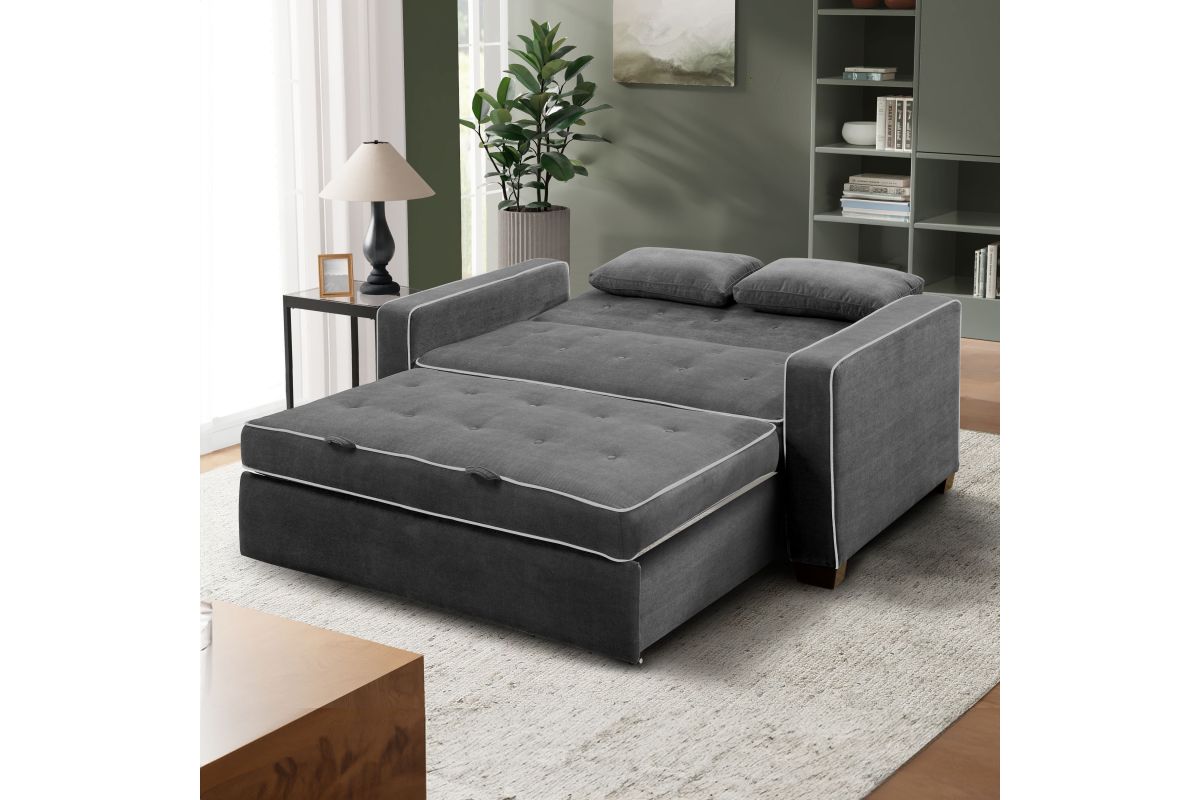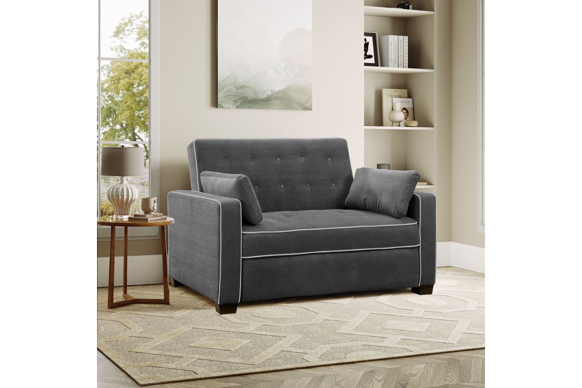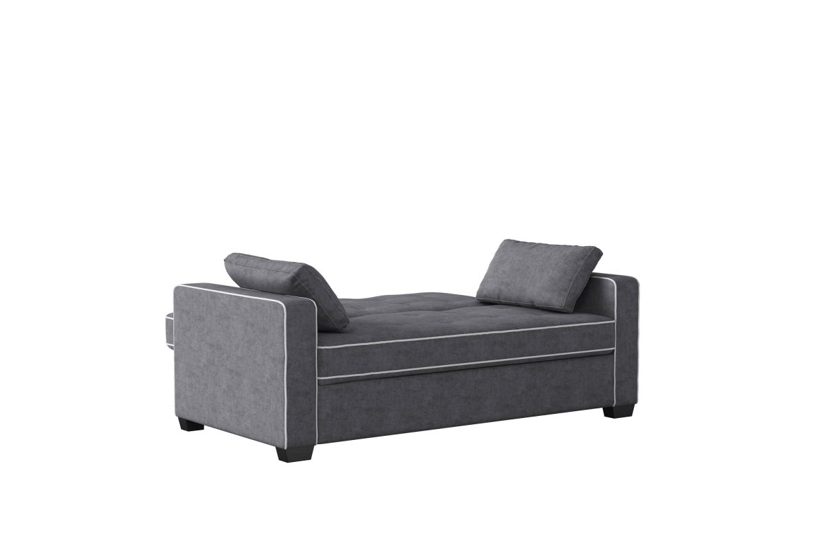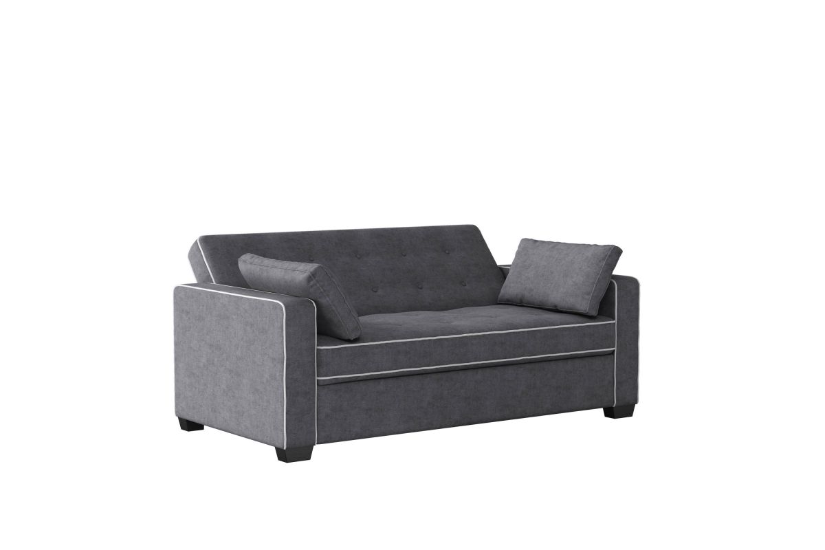 The Atherton convertible sofa brings together clean design, smart engineering and craftsmanship in this gorgeous sofa. Built strong, this multi-function sofa transforms into an optional lounger and full size bed making it perfect for the den or guest room. Featuring multi-functional positions, the Atherton showcases our patented Finger Guard Protection with click & lock technology to avoid injury. This versatile sofa is tufted with high-density foam cushions and Dream Coils wrapped in self stitching upholstery fabric in Charcoal -including two throw pillows- providing a luxurious feel and easy cleaning maintenance. This durable sofa is constructed with kiln dried solid hardwood frame, providing superior structure, stability and support. Treat your guests to the Atherton’s comfortable bed and they will feel completely rested and energized the next morning. Whether decorating the new guest room or your family den, bring the Atherton to your home for extra sleeping space and make any weekend a holiday.