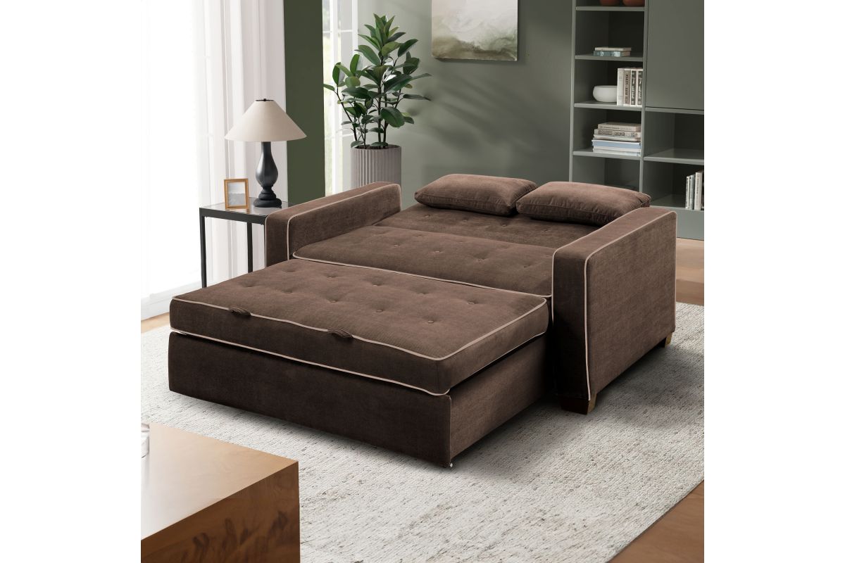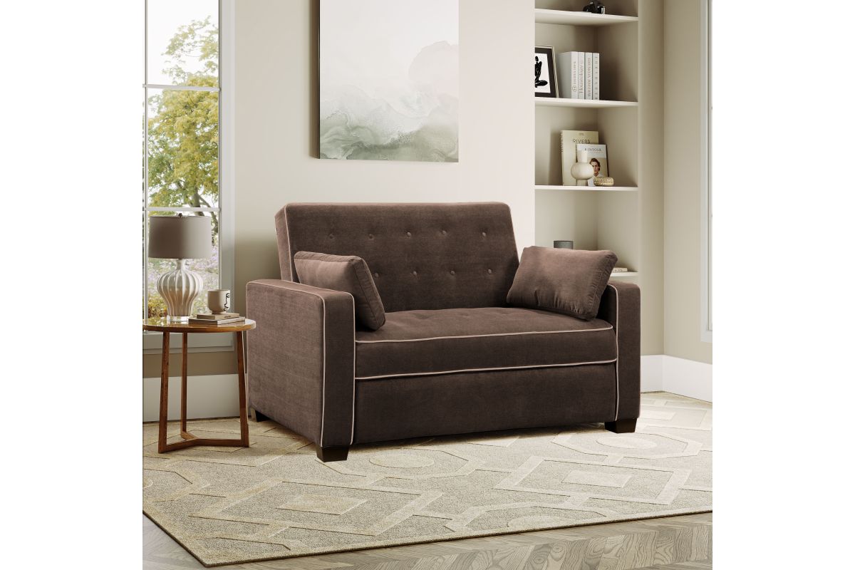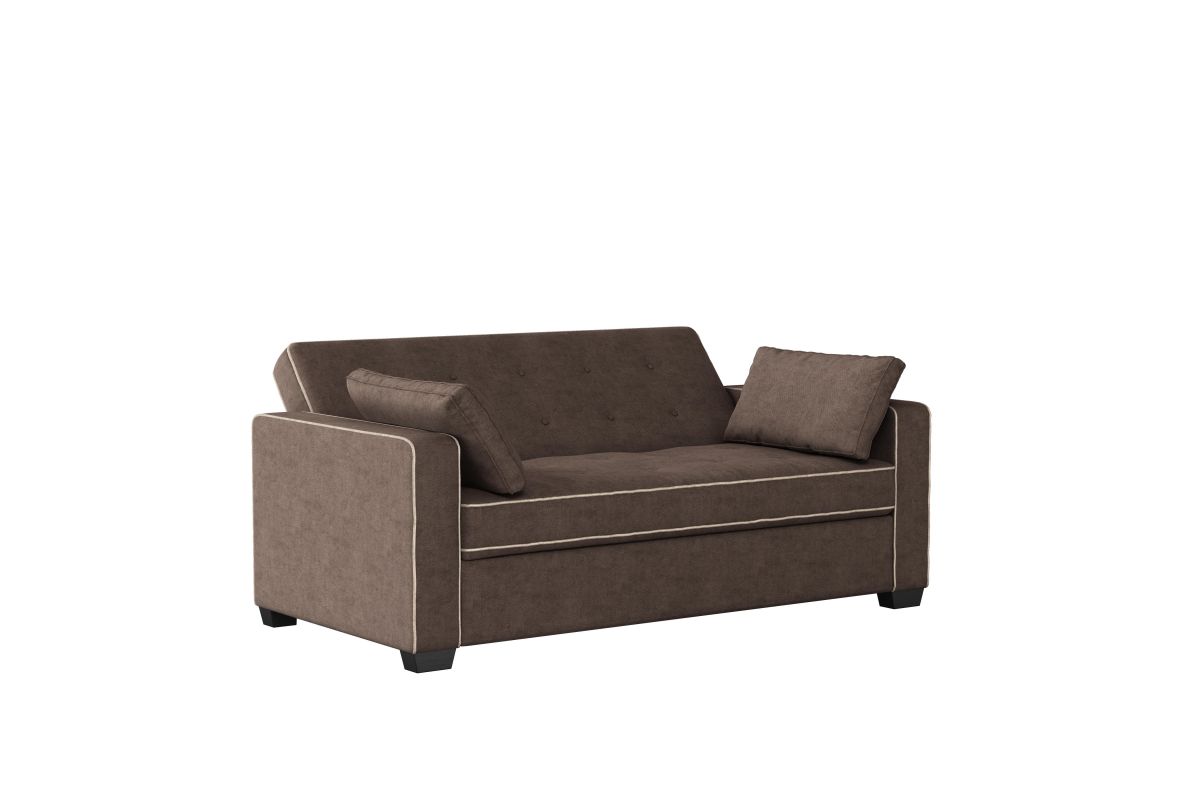 The Atherton convertible sofa brings together clean design, smart engineering and craftsmanship in this gorgeous sofa. Built strong, this multi-function sofa transforms into an optional lounger and full size bed making it perfect for the den or guest room. Featuring multi-functional positions, the Atherton showcases our patented Finger Guard Protection with click & lock technology to avoid injury. This versatile sofa is tufted with high-density foam cushions and Dream Coils wrapped in self stitching upholstery fabric in Charcoal -including two throw pillows- providing a luxurious feel and easy cleaning maintenance. This durable sofa is constructed with kiln dried solid hardwood frame, providing superior structure, stability and support. Treat your guests to the Atherton’s comfortable bed and they will feel completely rested and energized the next morning. Whether decorating the new guest room or your family den, bring the Atherton to your home for extra sleeping space and make any weekend a holiday.