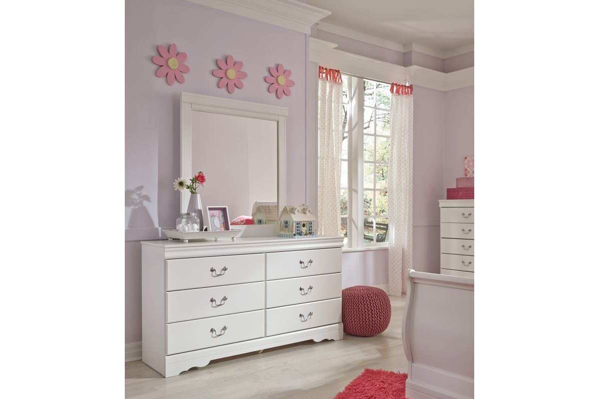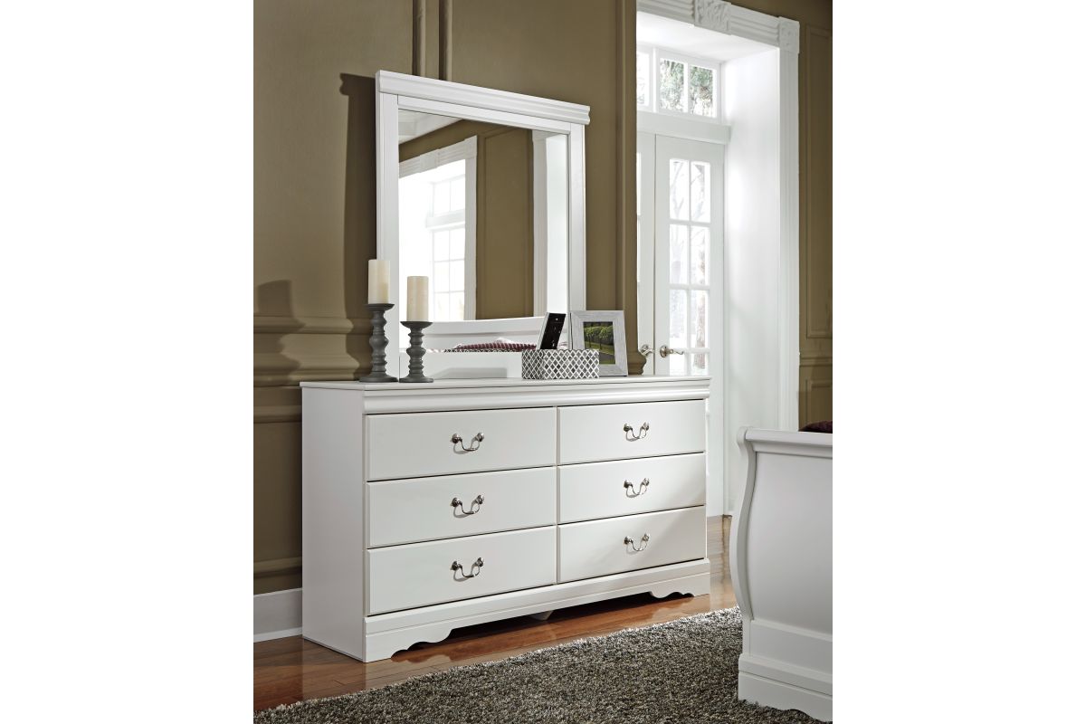This dresser and mirror set's crisp cottage white gives traditional Louis Philippe profiling a delightful style awakening. The look is timeless. The fee?l Right at home. Six smooth-gliding drawers with antiqued bail pulls beautifully accommodate.