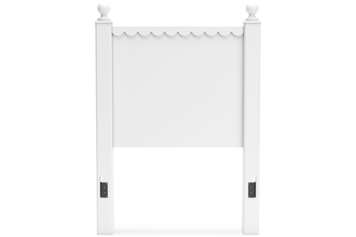 Make morning or bedtime that much more magical with this twin panel headboard. Charmingly cute with its scalloped detailing, it appeals to both her sense of playful whimsy and your love for modern design. And the headboard's crisp white finish gives you the versatility to pair it with existing decor.