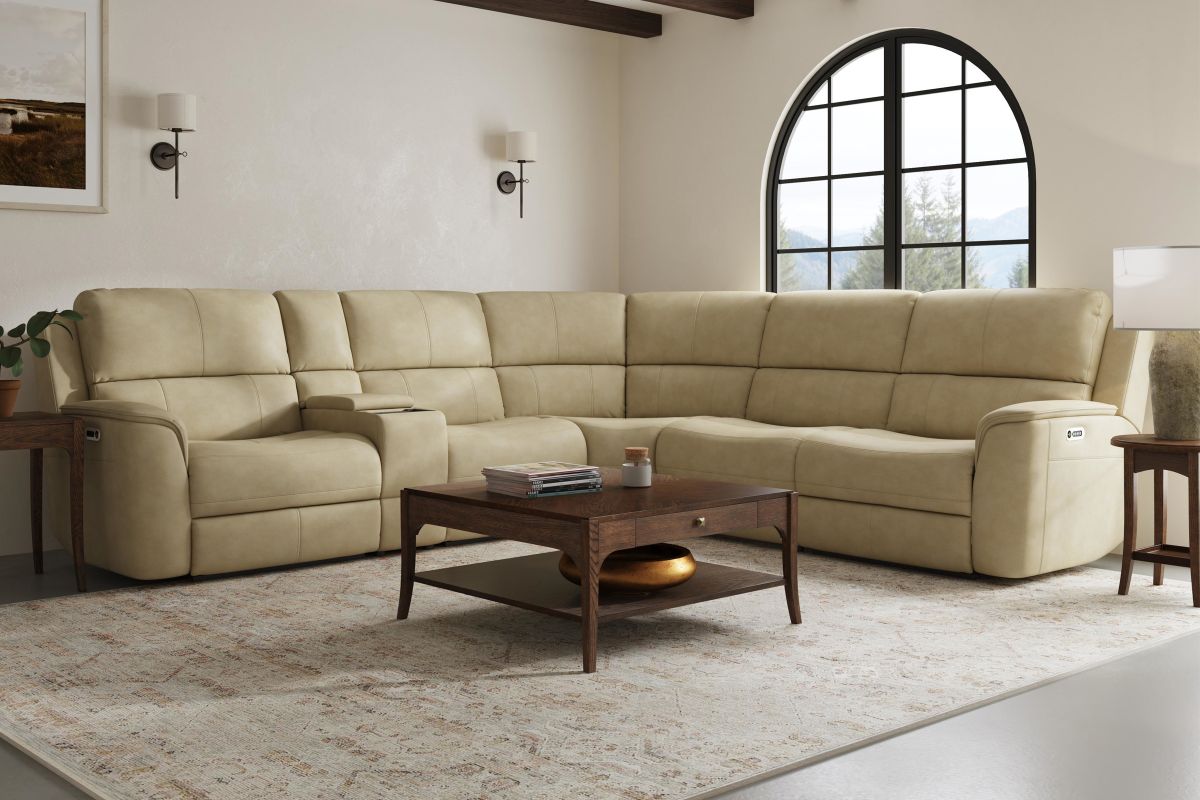Treat yourself to a comfortable yet refined sitting experience with the Oliver triple power reclining sectional with power headrests and lumbar. This piece features a generously scaled frame, contoured seats, and padded arms with a unique sculptural shape and welt trim. Choose from six components to build the perfect configuration for your home. Power recline, headrests and lumbar controls on both ends allow for customized comfort, and included USB ports provide convenient device charging. Our Zero Gravity recline technology gives the feeling of weightlessness while our patented Blue Steel Spring provides lasting seat support. Choose from three top-grain leather options to suit your style.