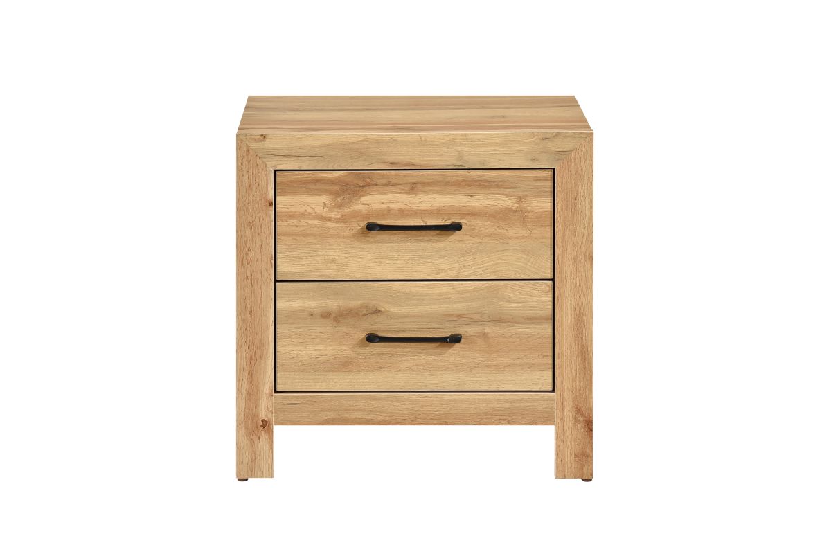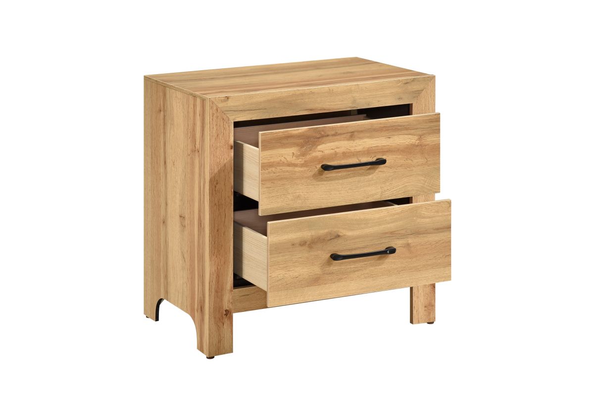 Add functional rustic charm to your bedroom with this beautifully crafted 2-drawer nightstand. Featuring a warm natural finish, this piece is constructed from a durable blend of faux wood veneer, wood, and engineered wood, ensuring long-lasting quality. Each of the two spacious drawers boasts reliable dovetail construction and smooth metal-on-metal center glides for effortless opening and closing, complemented by stylish black nickel-tone bar pulls. What's more, this nightstand arrives fully assembled, ready to enhance your space right out of the box. The surface is further protected by a melamine laminate, providing exceptional resistance against everyday scratches and stains, making it a perfect and practical addition to any bedside. No assembly required.