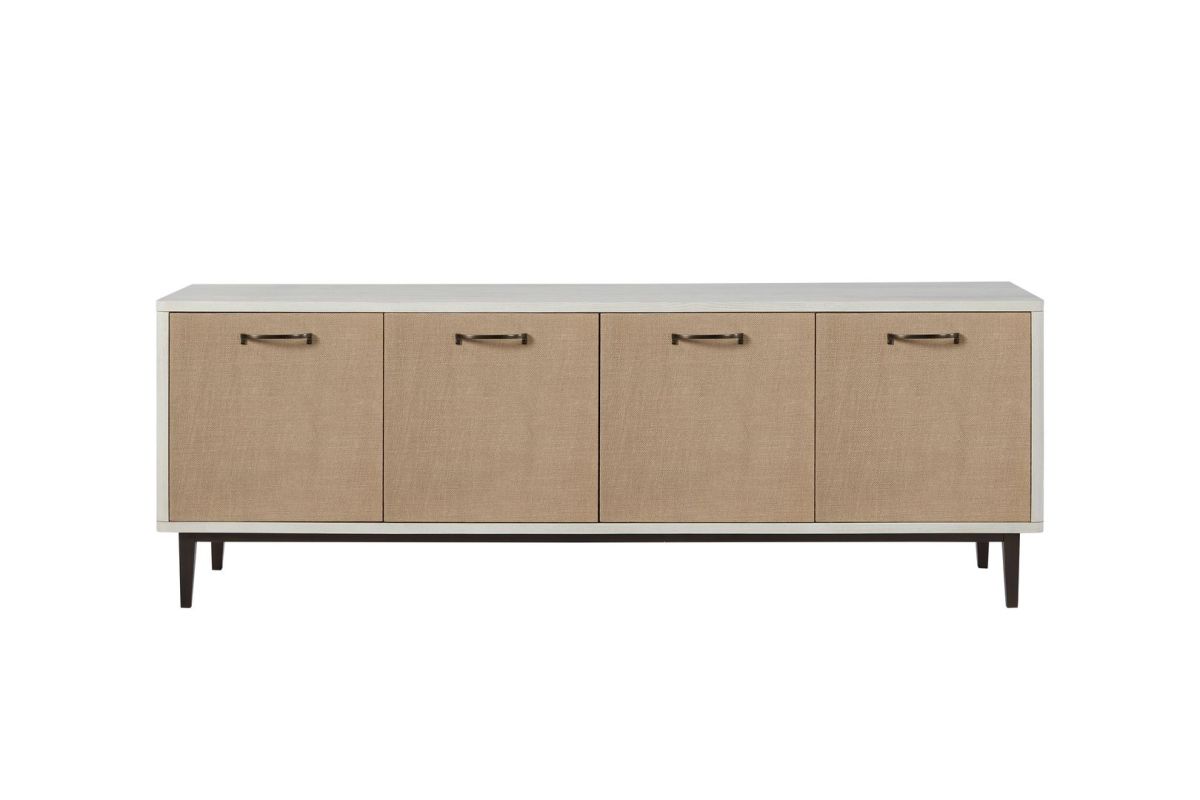 Elevate your living space with the Trilogy Vanilla 80-Inch Console, a harmonious blend of modern design and everyday functionality. Finished in a soft vanilla tone, this console features clean lines and a spacious top, making it an ideal centerpiece for living rooms, hallways, or open spaces. The lower compartments offer organized storage for media, books, and more, ensuring your essentials are neatly tucked away. With dimensions of 80" L x 18" W x 28" H, this console provides ample surface area and storage without overwhelming the room. Assembly required.
