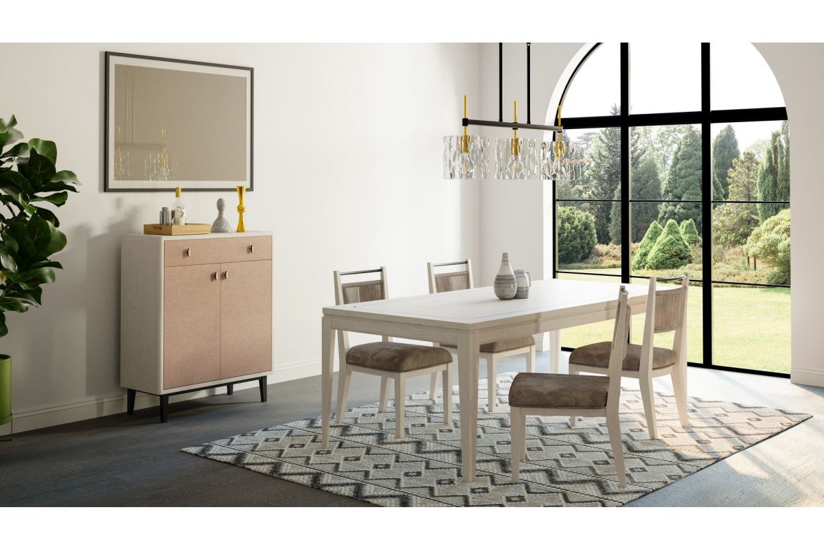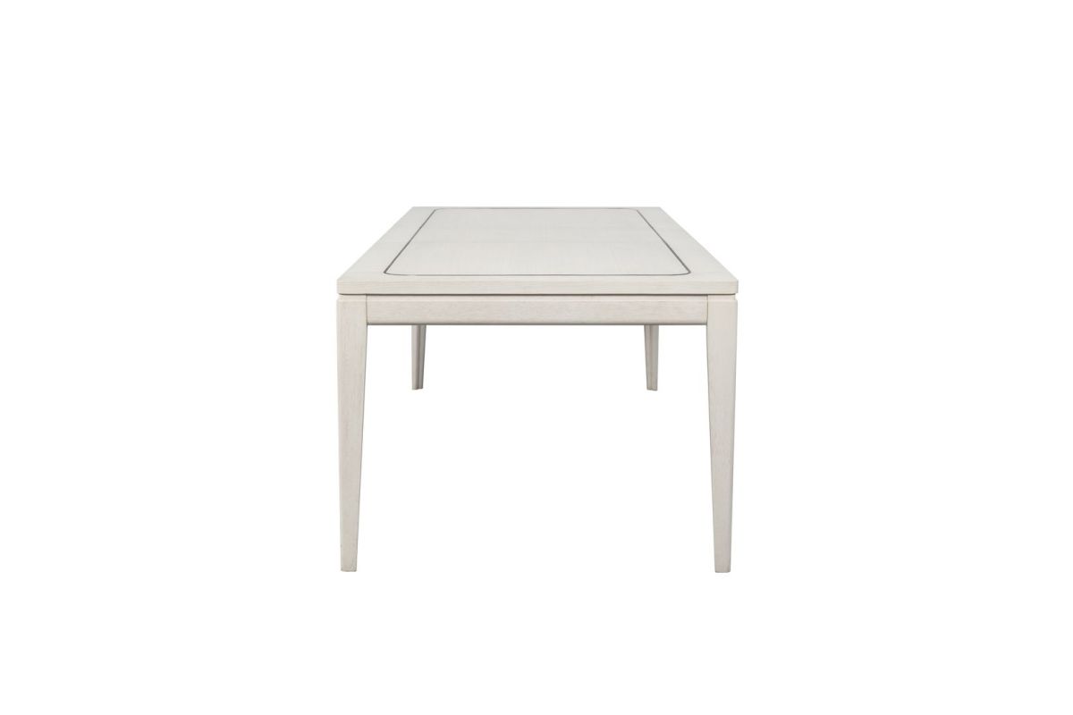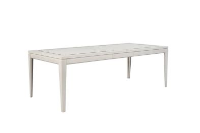 The Trilogy Leg Table with Metal Inlay is a masterpiece of elegant casual design, thoughtfully crafted to enhance any dining space. Its stunning Vanilla finish complements the graceful lines of the table, creating a warm and inviting ambiance. The table top features intricate metal inlays, adding a touch of sophistication and artistic detail to its design. Constructed with high-quality oak veneers, this table showcases durability and timeless style, making it a perfect centerpiece for both everyday meals and special gatherings. Combining aesthetic appeal with functionality, the Trilogy Leg Table offers a refined yet approachable charm that suits a variety of interiors. Assembly required.