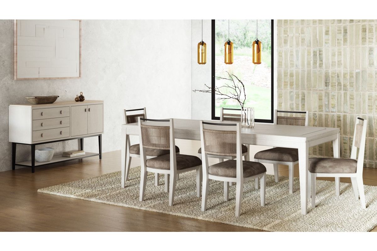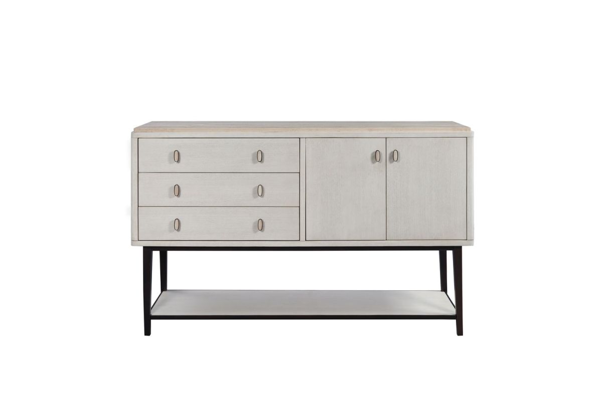 The Trilogy Vanilla Server with Metal Base is a beautifully crafted piece that blends modern sophistication with timeless appeal. Featuring a stunning Vanilla finish and oak veneers, this server offers both style and functionality. The metal base provides a sleek contrast, enhancing the overall design. Equipped with soft-close drawers and European soft-close hinges, it ensures smooth and quiet operation. The custom hardware adds a touch of uniqueness, elevating the piece to a level of elegance perfect for any dining or living space. This server effortlessly combines high-quality materials and exceptional craftsmanship for a refined, versatile addition to your home. Assembly required.