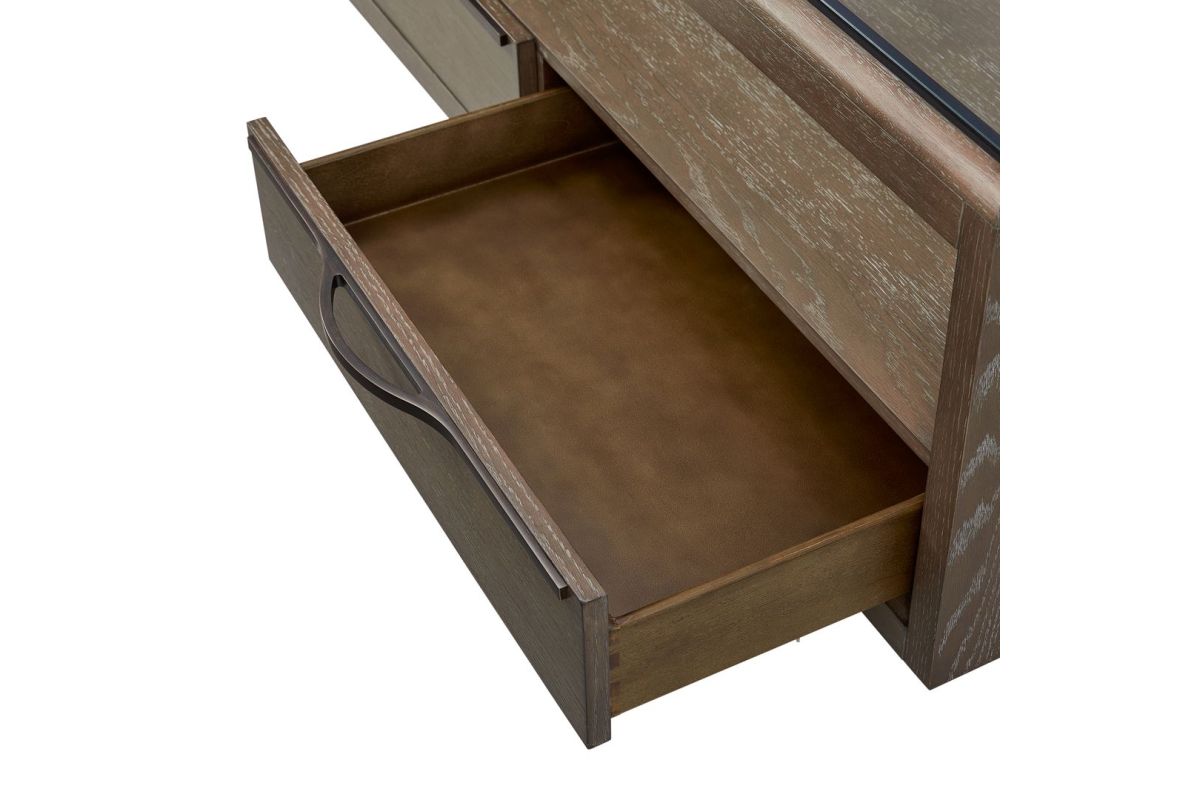 - Includes two full-extension drawers with wide metal pulls, adding functional storage while maintaining a sleek silhouette.