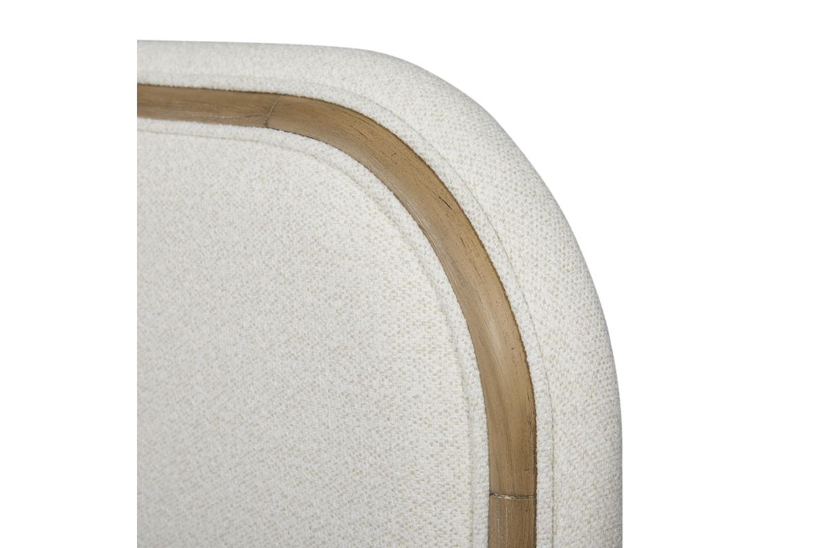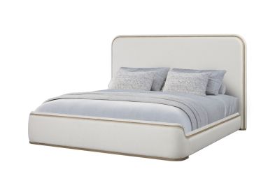 Experience the perfect fusion of refined design and luxurious comfort with the Trilogy Upholstered Bed. Wrapped in a soft, White Sand colored fabric, this bed exudes timeless elegance with a modern twist. The fully upholstered headboard and footboard are framed with subtle wood-toned trim, creating a warm contrast that enhances the bed’s serene and sophisticated profile. Its gently rounded edges and clean lines contribute to a sleek, contemporary silhouette that suits both minimalist and transitional interiors. Crafted with plush padding and quality materials, the Trilogy Upholstered Bed offers not only striking style but also enduring comfort and support. A versatile centerpiece for any bedroom, this bed’s calming neutral palette pairs effortlessly with a wide range of bedding and décor. Assembly required.