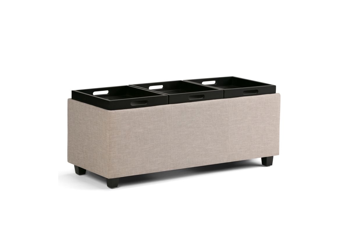Why sacrifice function for beauty. For a stylish solution to your storage and serving needs, look no further than the Avalon Extra Large Rectangular Storage Ottoman. The unit is made from durable fabrics and comes with three flip over serving trays and lots of storage space. This attractive ottoman is extra strong and durable and features a beautiful stitched exterior and large storage interior. Whether you use this ottoman in your entryway, living room, family room, basement or bedroom, it will allow you to hide away all that mess and eat your food in comfort. Assembly required.
