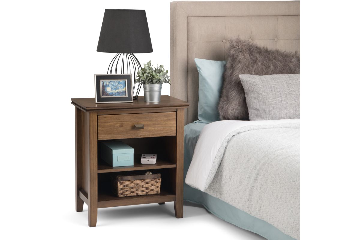 Good things really do come in small packages. Nothing could illustrate this better than the design of our Artisan Bedside End Table which features one drawer and an open storage area with one shelf. The table is sized perfectly to allow room for a table lamp, books, and family photos. This flexible piece can be used as a bedside table, side table, or end table. Assembly required.