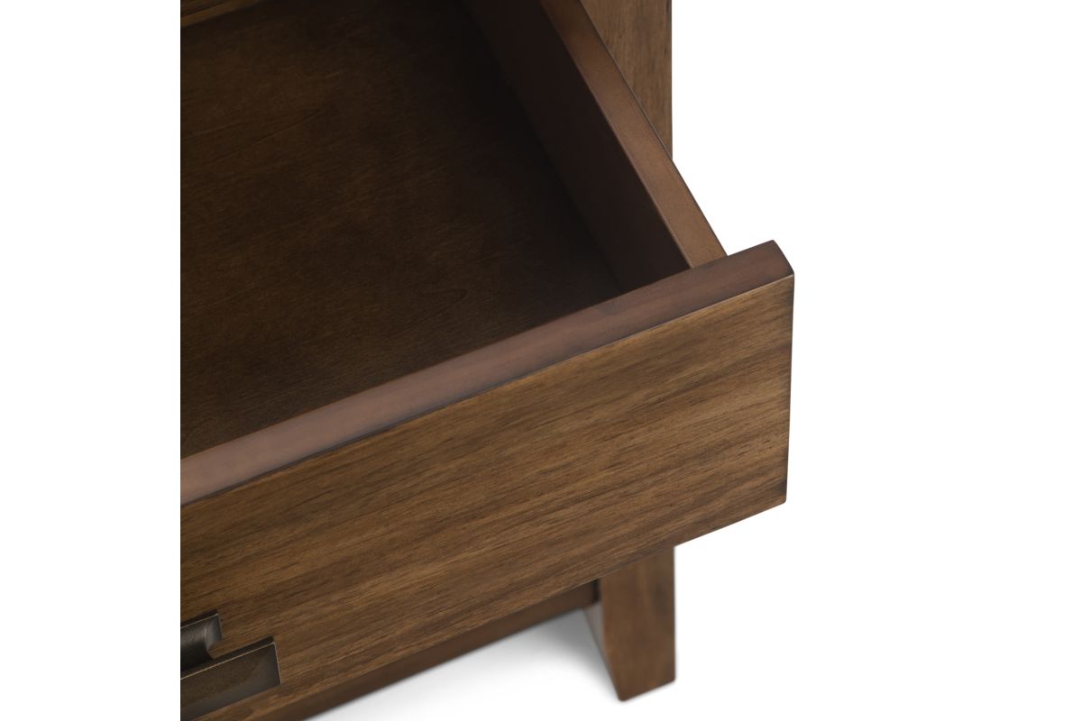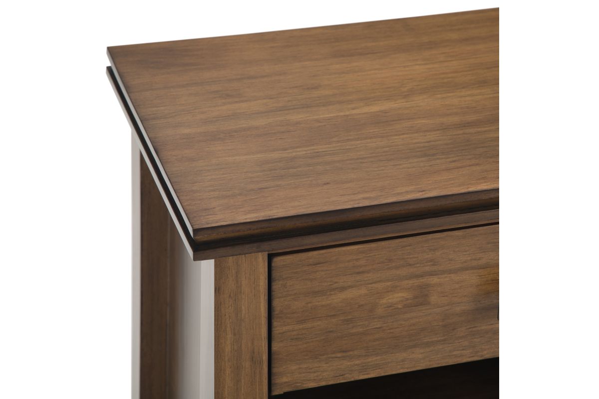 - Hand-finished with a Rustic Natural Aged Brown stain and glazed finish with a protective NC lacquer to accentuate and highlight the grain and the uniqueness of each piece of furniture