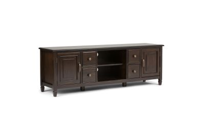 Now that 80 inch flat screen TVs are more affordable, you need to have one. To enjoy it fully, you will also need the perfect TV Stand to position your TV just right. Look no further. The Connaught Extra Wide TV Stand is perfectly sized for TVs up to 80 inches. It has plenty of storage space for all your media and gaming devices. It has a large centrally located open area with four side drawers as well as two enclosed spaces. The two large side storage cabinets open to one adjustable shelf. The unit features cord management cut-outs for easy installation of TV and media components. Assembly required.