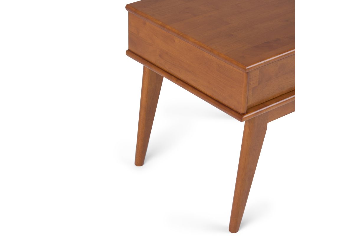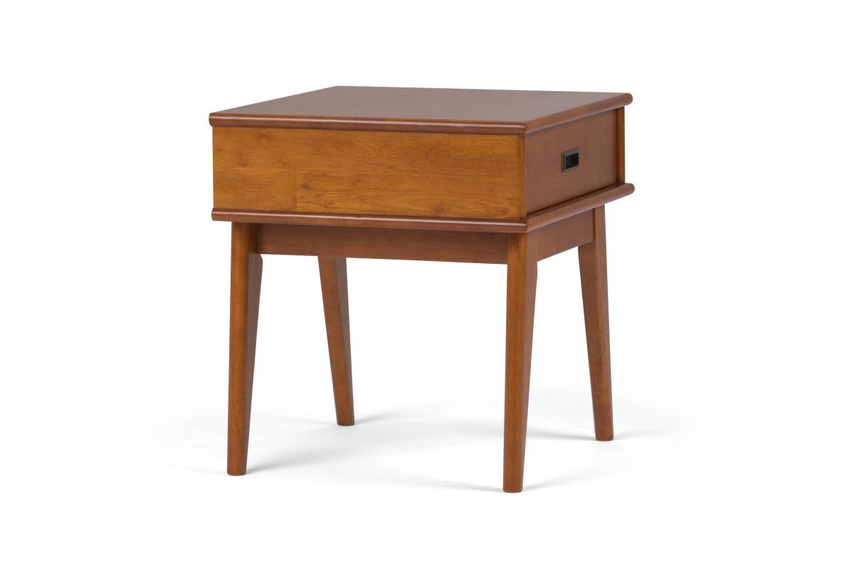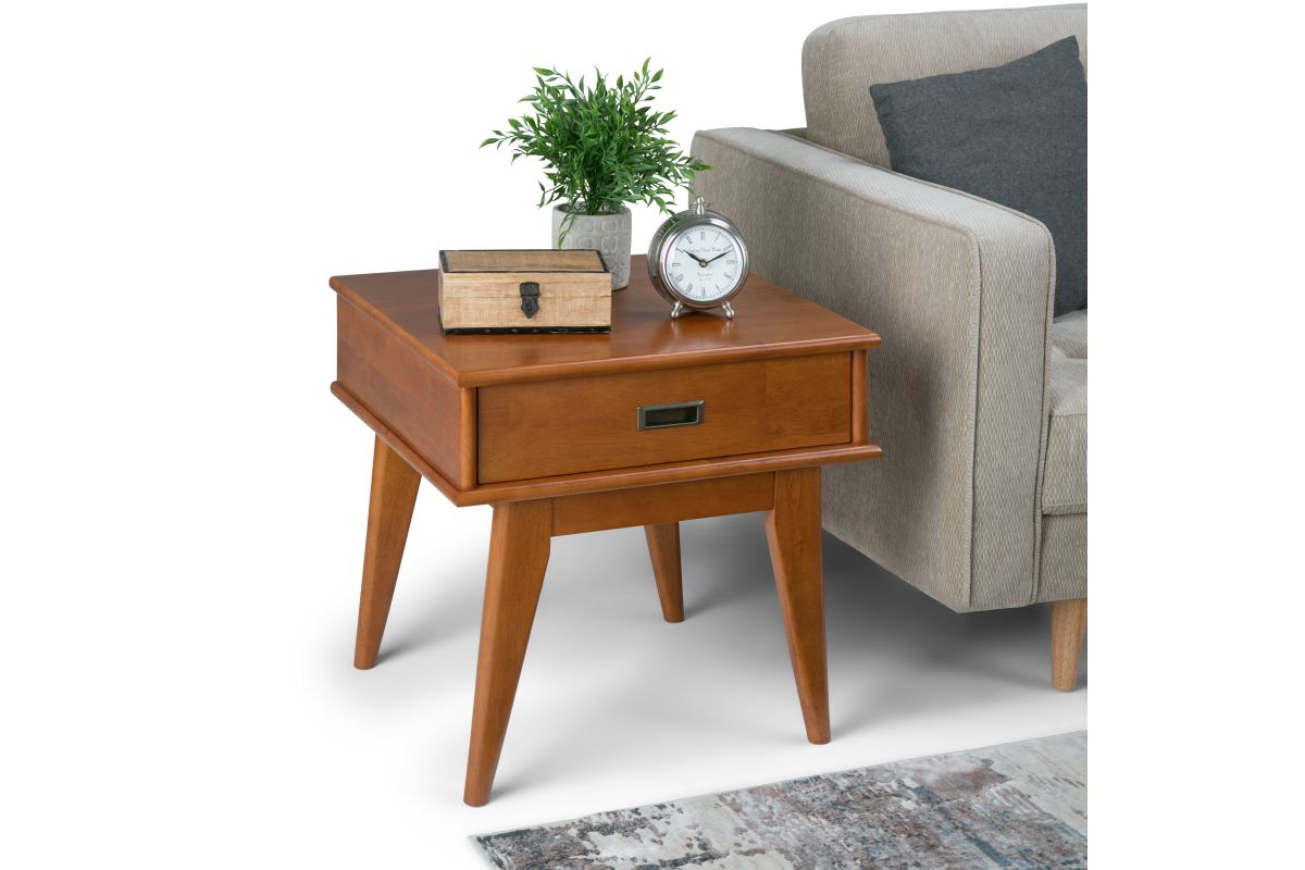 A sofa looks lonely without its End Table. A pair of these stylish modern Draper Mid Century End Tables is a perfect complement to any sofa style. Simple lines and a spacious storage drawer keep your tabletop clutter-free. Assembly required.