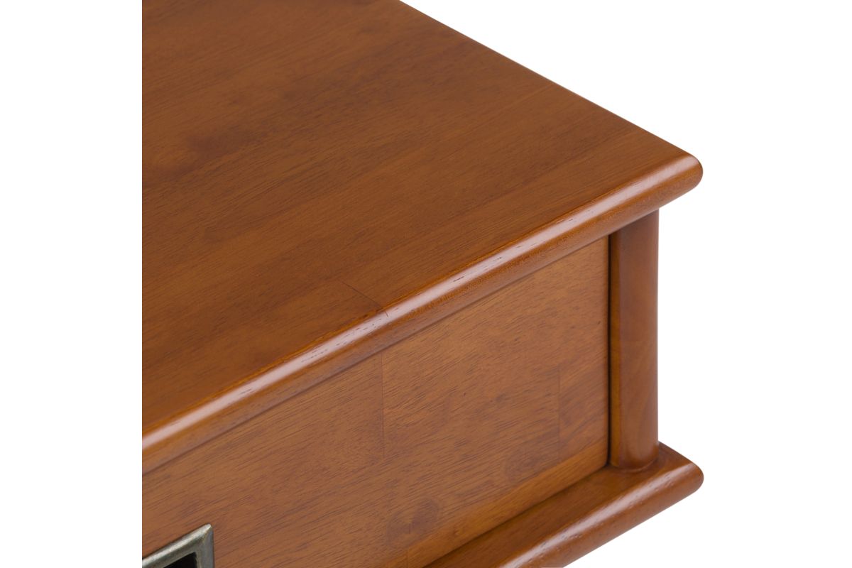 - Hand-finished with a Rich Teak Brown stain and a protective NC lacquer to accentuate and highlight the grain and the uniqueness of each piece of furniture