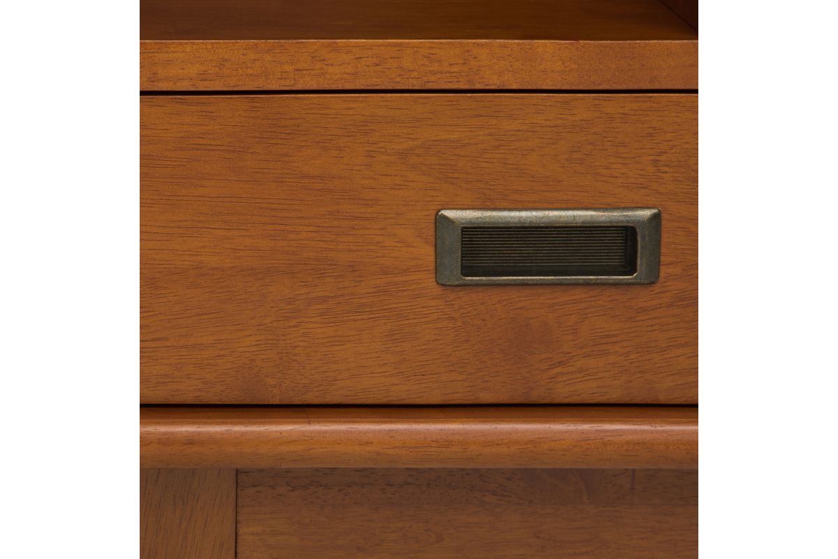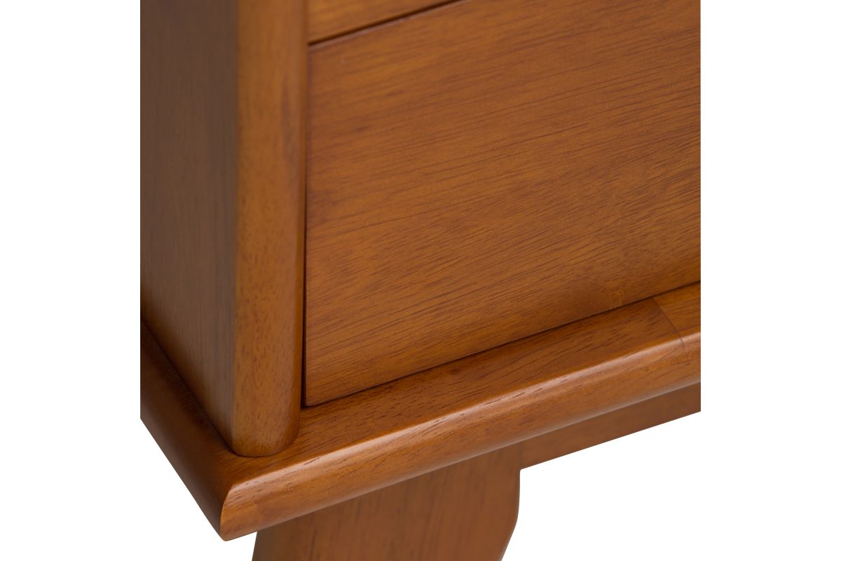 - Hand-finished with a Rich Teak Brown stain and a protective NC lacquer to accentuate and highlight the grain and the uniqueness of each piece of furniture