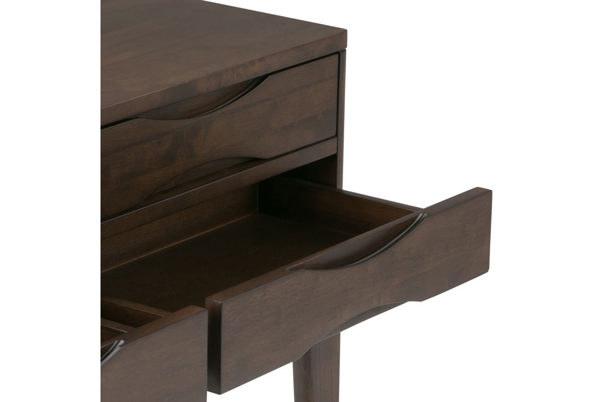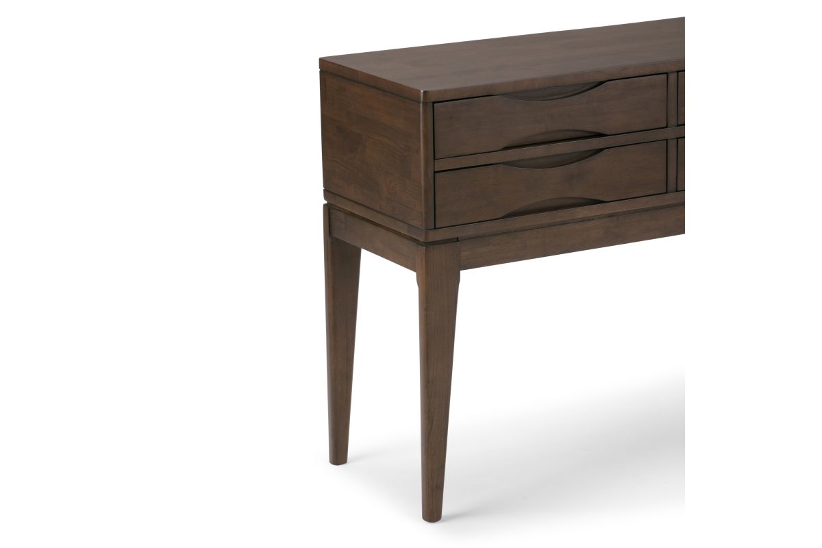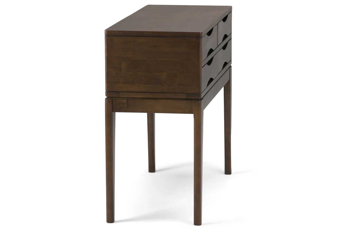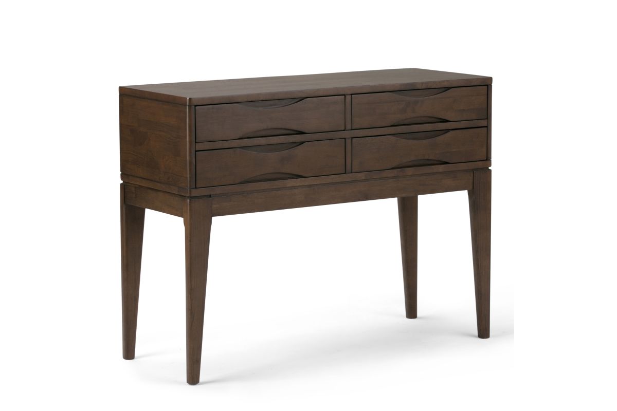 Update your home decor with the Harper Hallway Console Table. The hallway console table is crafted of solid hardwood with a rich finish. This mid-century style table is perfect to decorate an entryway or use as a sofa table. It features four notched drawers to take care of all your storage needs. The spacious top surface provides ample room to place decorations for all occasions. Assembly required.