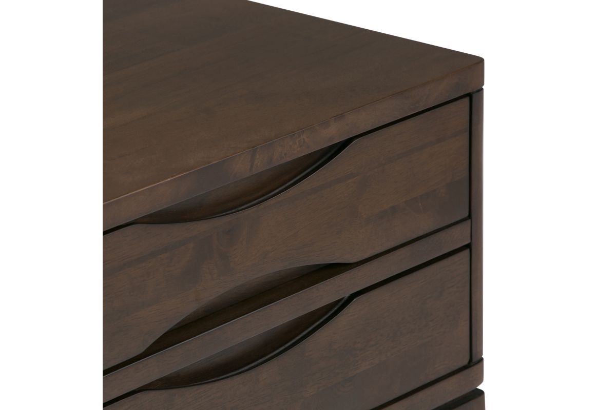- Hand-finished with a Dark Walnut Brown stain and a protective NC lacquer to accentuate and highlight the grain and the uniqueness of each piece of furniture
