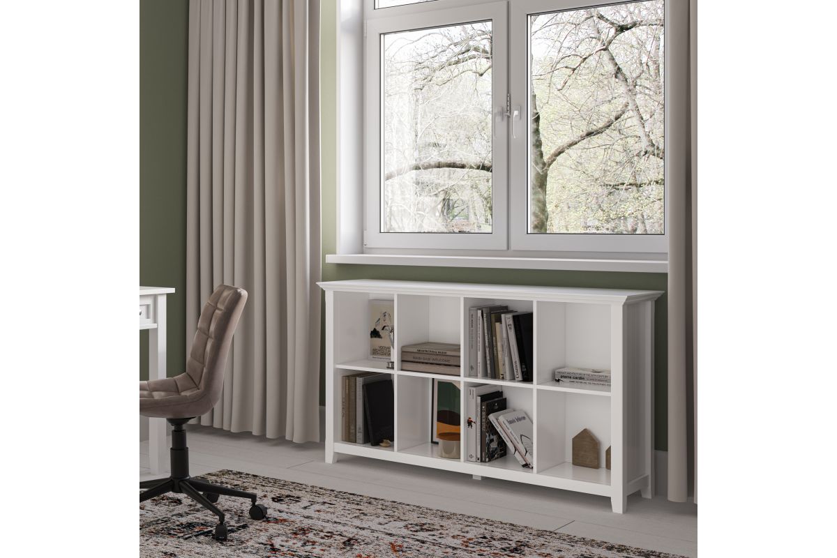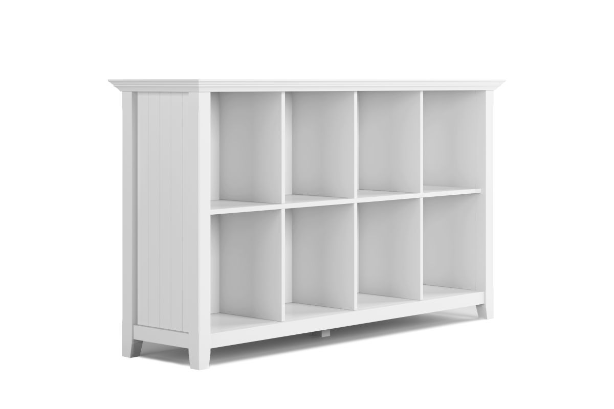 The clutter is sometimes overwhelming; books, CD's, mementos, vases, photos, sculptures, decor pieces... The list is endless. The Acadian 8 Cube Storage / Sofa Table is the ultimate solution for your storage needs. Display your books and decorative accents in dedicated display spaces. With molded top, tapered legs and grooved side panels the design of this piece enhances the appearance of all your items while the fixed shelves offer exceptional structural strength and durability. Assembly required.