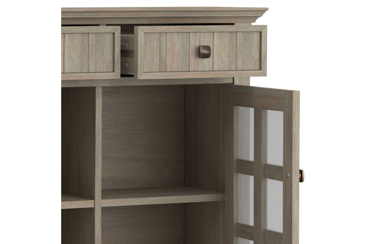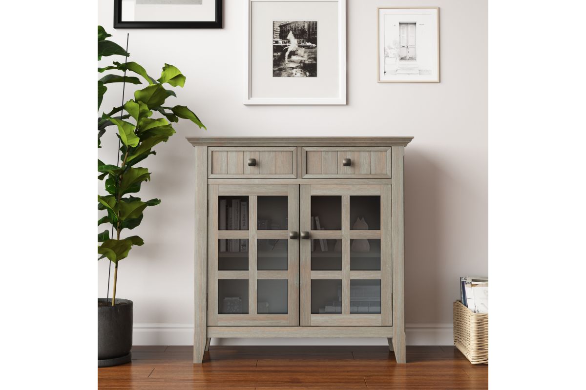 Your entryway is the main traffic zone of your home and sometimes it can be a mess! It is for this reason we designed the Acadian Entryway Storage Cabinet. Two drawers conveniently hold your personal items while the tempered glass two door cabinet has two adjustable shelves that offer an abundance of space to store away anything you wish to remain hidden...your secret is safe with us. But don't be limited by our description, this flexible and functional piece can be used in just about any room in your home. Assembly required.