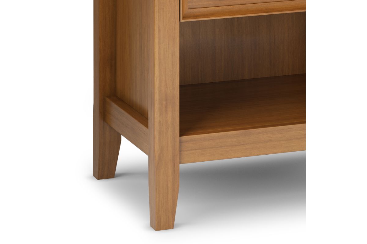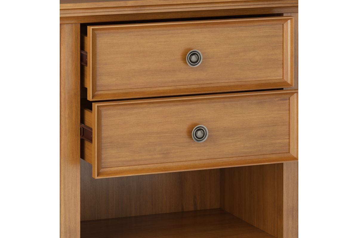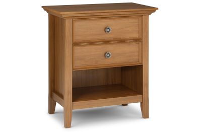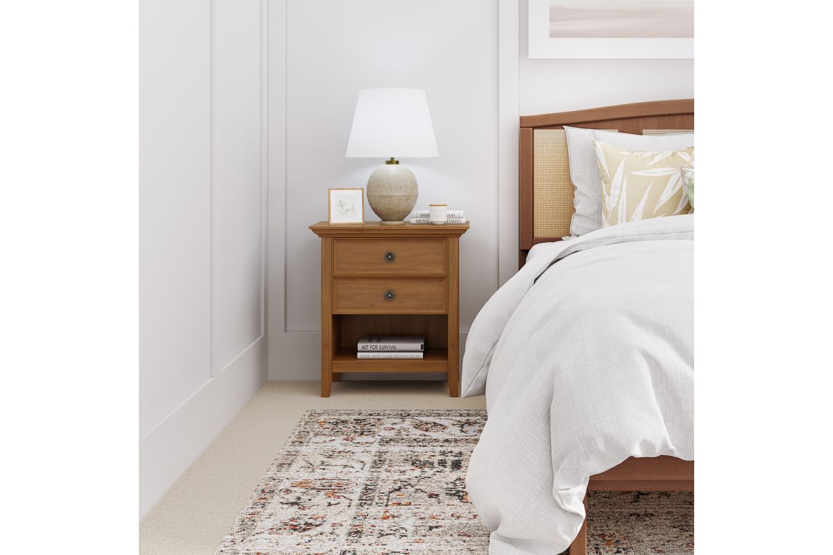 Keep your bedtime essentials within reach on the Amherst Bedside Table. The ideal bedside accessory, the nightstand has two drawers for concealed storage of small items as well as an open shelf on the bottom for books and larger items. Constructed of solid wood, this product is a sturdy piece that’ll fit wonderfully into your bedroom, living or family room décor. Assembly required.