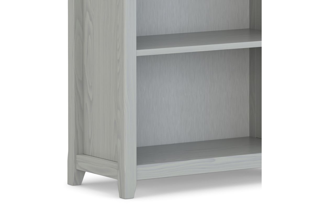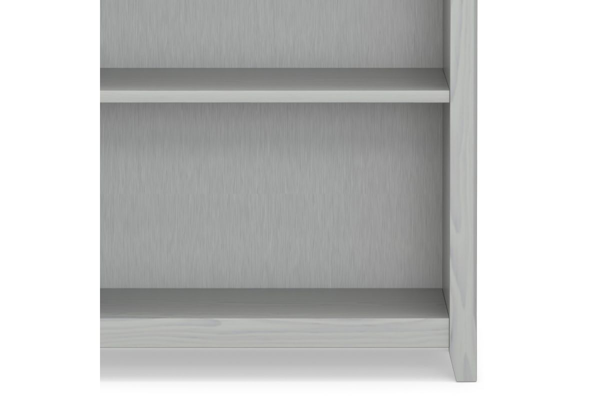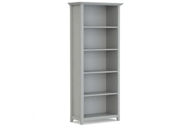 Timeless craftsmanship meets versatile functionality in the Amherst 5 Shelf Bookcase. Handcrafted from solid pine wood, this tall bookshelf features a fog grey finish, accentuating its soft and elegant aesthetic. Five adjustable shelves offer flexible storage, perfect for books, decorative pieces, or home office essentials. The crown molding detail and clean lines draw inspiration from transitional design, making this solid wood bookshelf a refined addition to living rooms, offices, or bedrooms. Built from sustainably sourced pine, kiln-dried to resist warping and cracking, this wooden bookcase delivers long-lasting durability while maintaining an eco-friendly footprint. Assembly required.