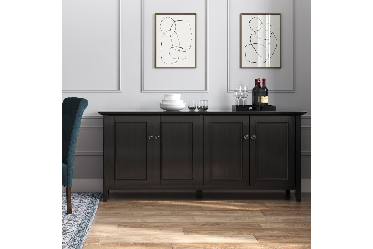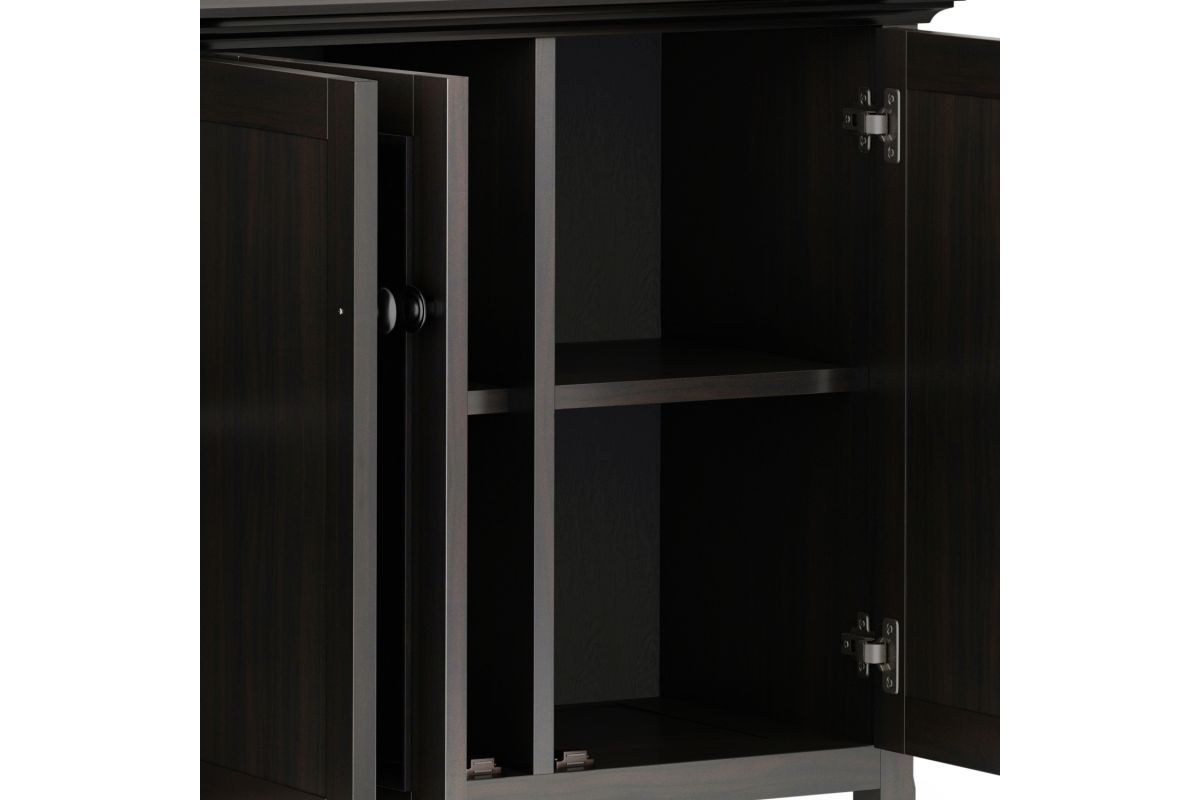 The Amherst Wide 4 Door Storage Cabinet is an attractive versatile piece. This cabinet is crafted of solid hardwood with a rich finish. The three framed doors open to enclosed adjustable shelves offer an abundance of versatility to effortlessly organize and store away anything you wish to remain hidden This flexible and functional piece can be used in just about any room in your home. Assembly required.