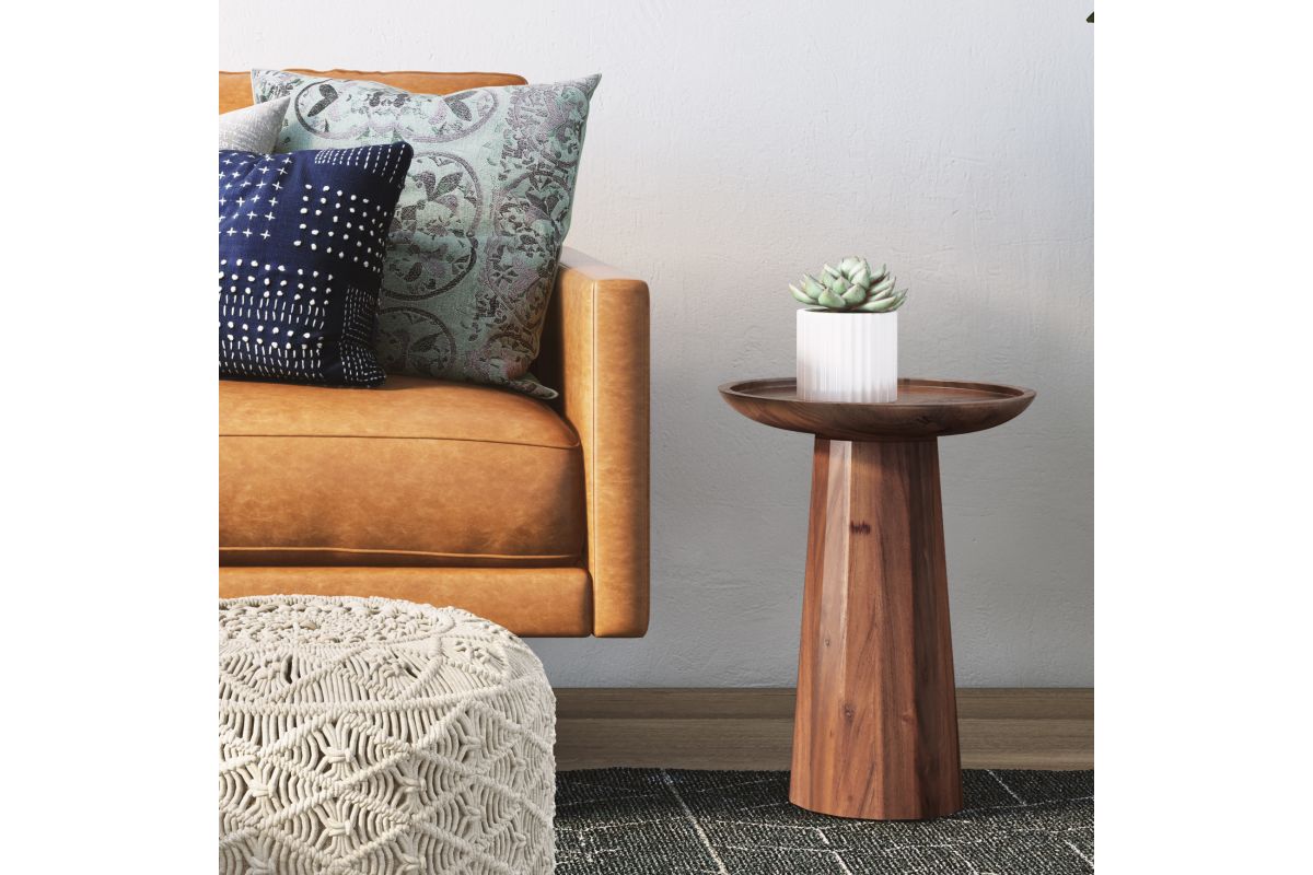 Bring contemporary style to your space with the Dayton Wooden Accent Table. The unique shape and distinctive textured detail will bring a striking statement to any room. Place it next to a sofa, bed, or your favorite accent chair for a decorative touch. No assembly required.