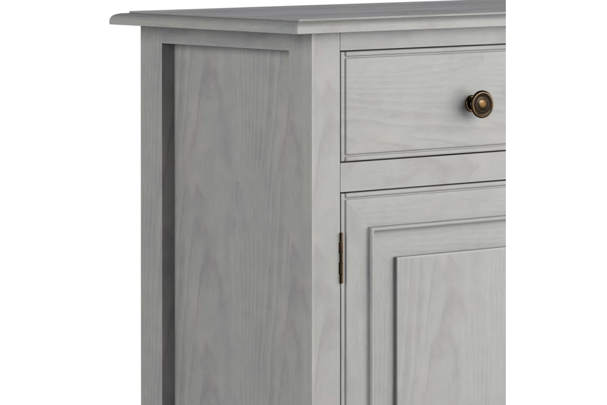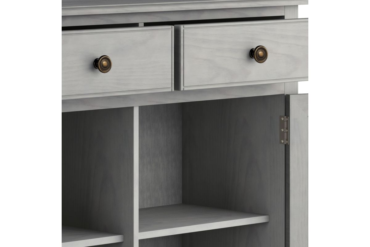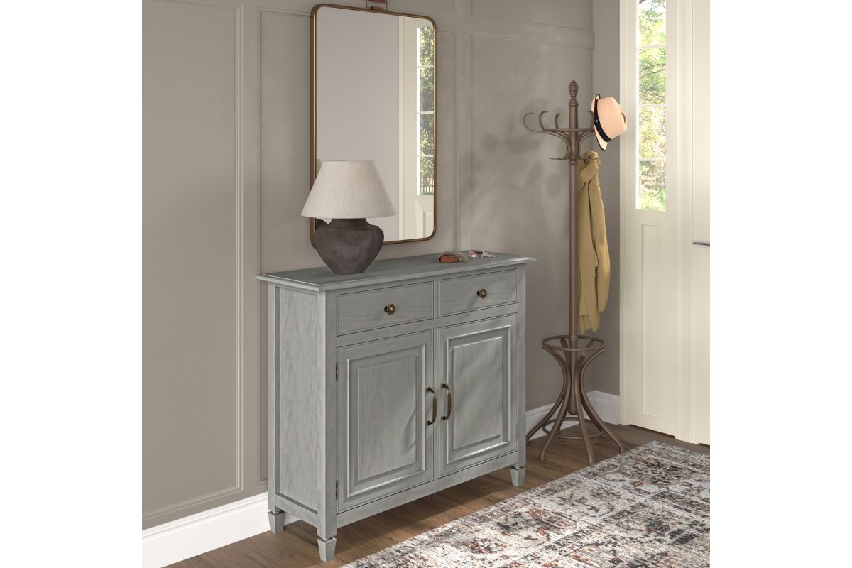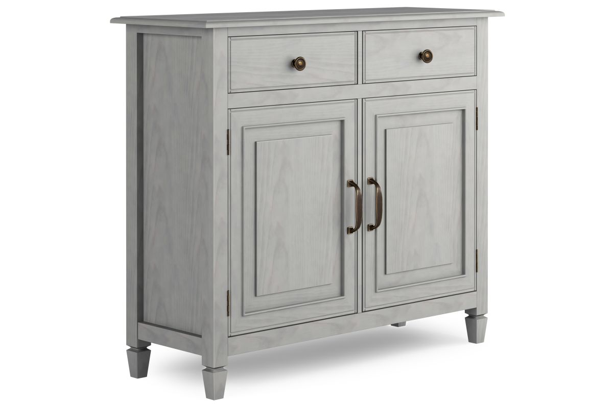 - Traditional Style: The Connaught Entryway Storage Cabinet in Fog Grey features a smooth, hand-applied finish and solid wood construction for a refined, elegant look. Plus, it features vintage raised-panel doors and drawers, as well as notched legs.