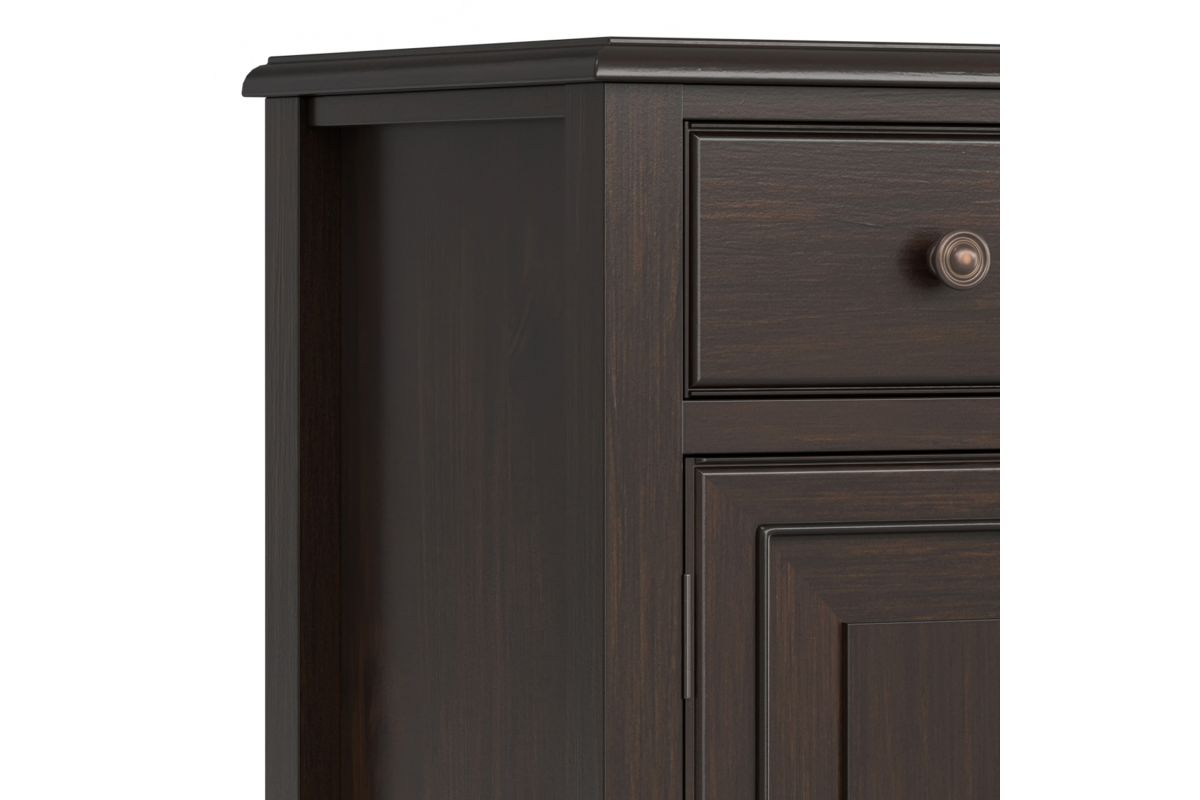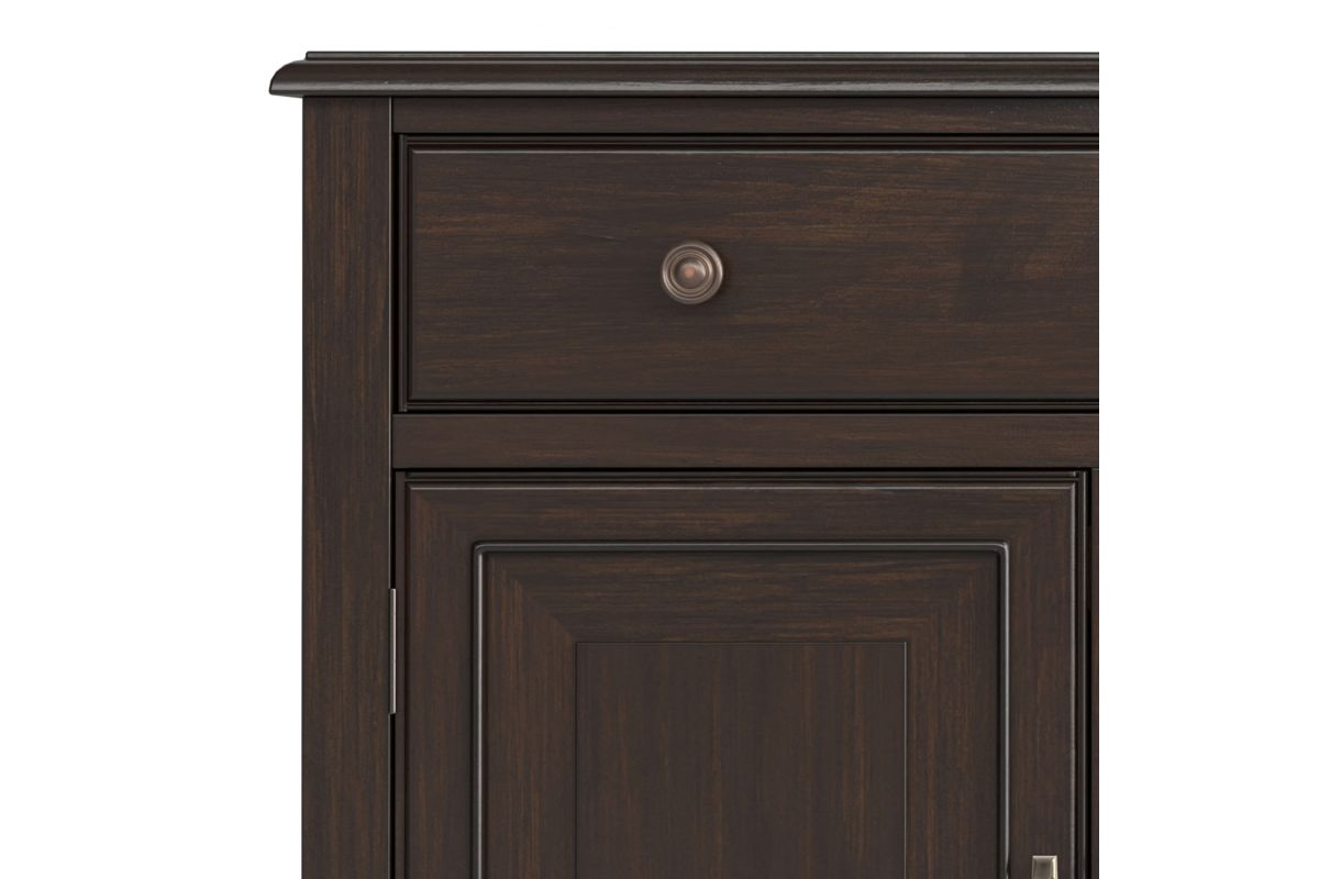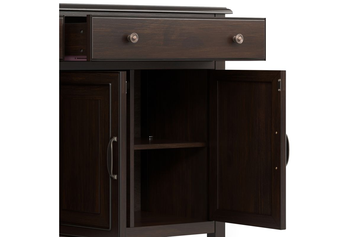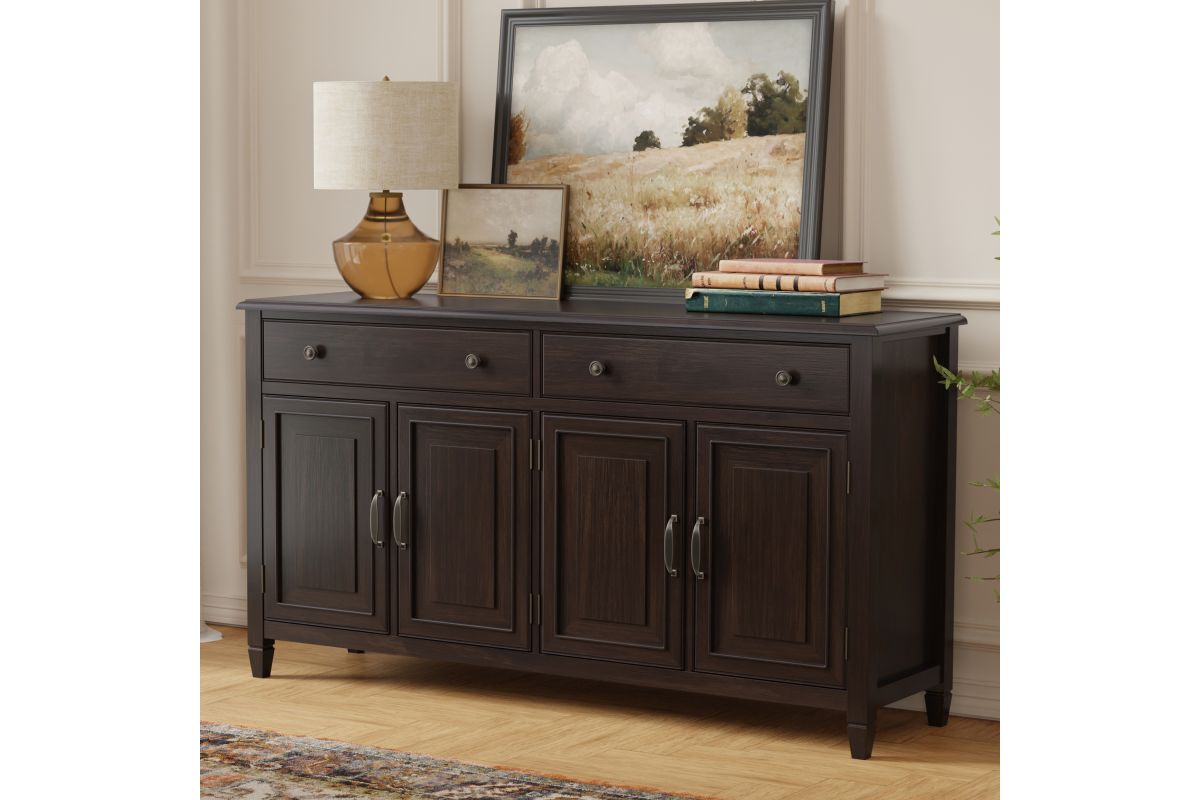There is never enough storage in the dining room. This Connaught Large Sideboard Buffet made from solid hardwood, fills so many needs. It features plenty of storage for your fine china, cutlery, or linens with the two lower cabinets and two top drawers. The top presents a large smooth surface to display serving pieces or decor. Assembly required.