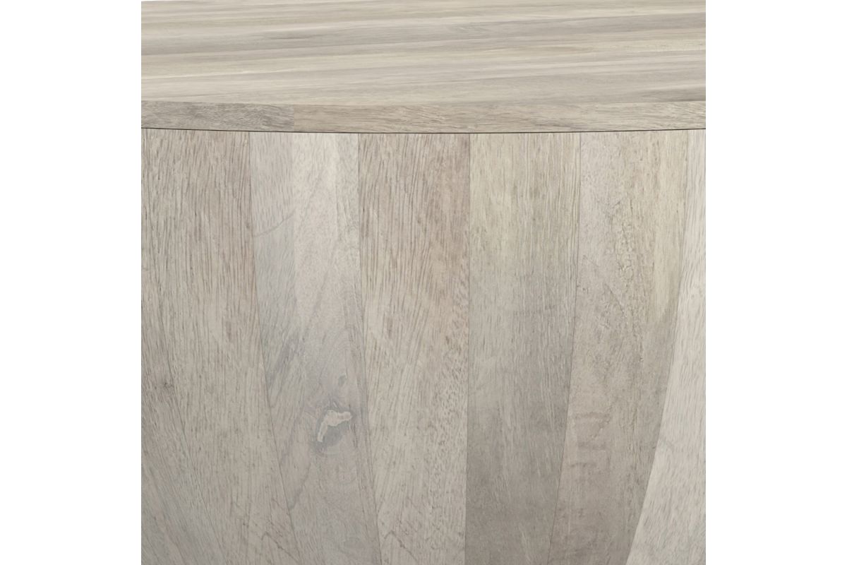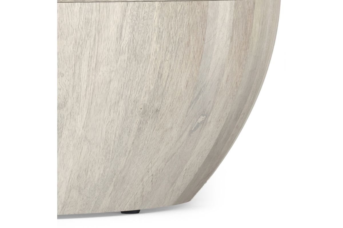 The Elmbrook Mango Wood Drum Coffee Table in White Wash showcases timeless craftsmanship and a striking modern design. Crafted from solid, sustainably sourced mango wood, its round drum shape and airy white-wash finish make it a versatile centerpiece for coastal, minimalist, or modern industrial spaces. Designed to offer beauty and functionality, this table is perfect for living rooms, family rooms, or lounges, blending eco-friendly materials with timeless style. No assembly required.