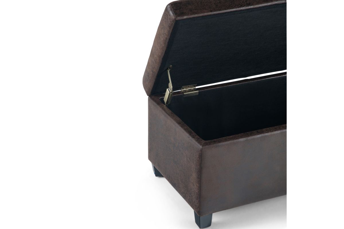 Clutter and mess everywhere. What you need is a tasteful, well made storage solution. The Avalon Large Rectangular Storage Ottoman Bench is made from durable fabrics and is the answer to all your needs. This attractive ottoman is extra strong and durable and features a beautiful stitched exterior and large storage interior. Whether you use this ottoman in your entryway, living room, family room, basement or bedroom, it will allow you to hide away all that mess. This ottoman is available in a variety of fabrics and colous. Assembly required.