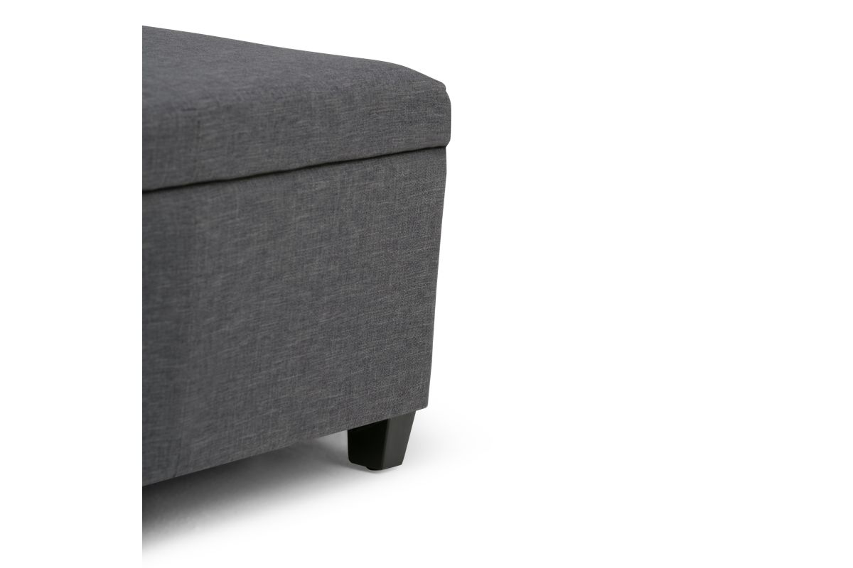 Clutter and mess everywhere. What you need is a tasteful, well made storage solution. The Avalon Large Rectangular Storage Ottoman Bench is made from durable fabrics and is the answer to all your needs. This attractive ottoman is extra strong and durable and features a beautiful stitched exterior and large storage interior. Whether you use this ottoman in your entryway, living room, family room, basement or bedroom, it will allow you to hide away all that mess. This ottoman is available in a variety of fabrics and colous. Assembly required.