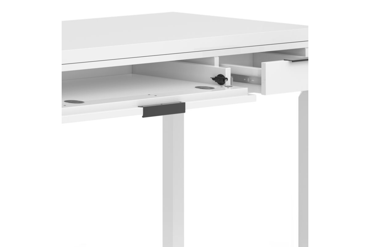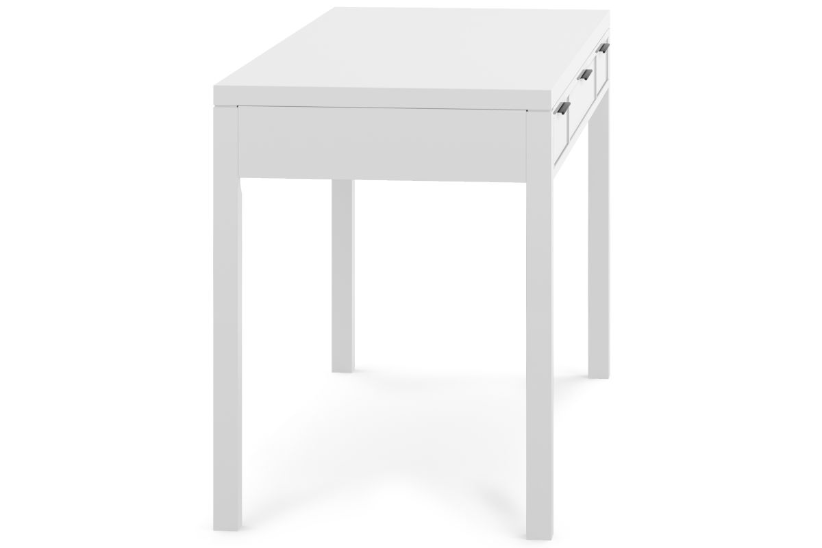 - Features two (2) side drawers with discreet handles, ball bearing drawer glides and one (1) center drawer with flip down front and internal keyboard tray.
