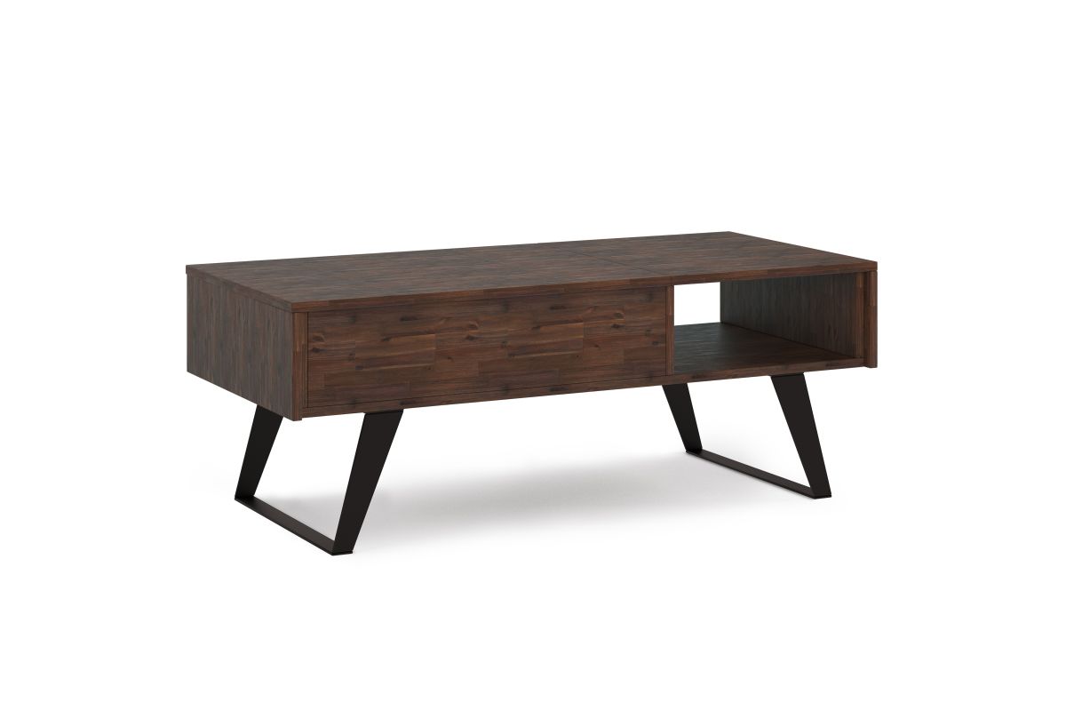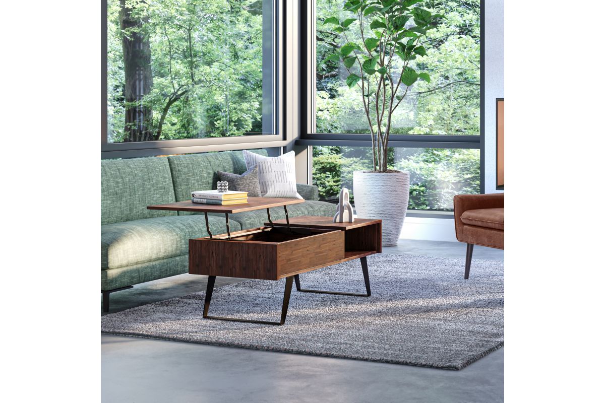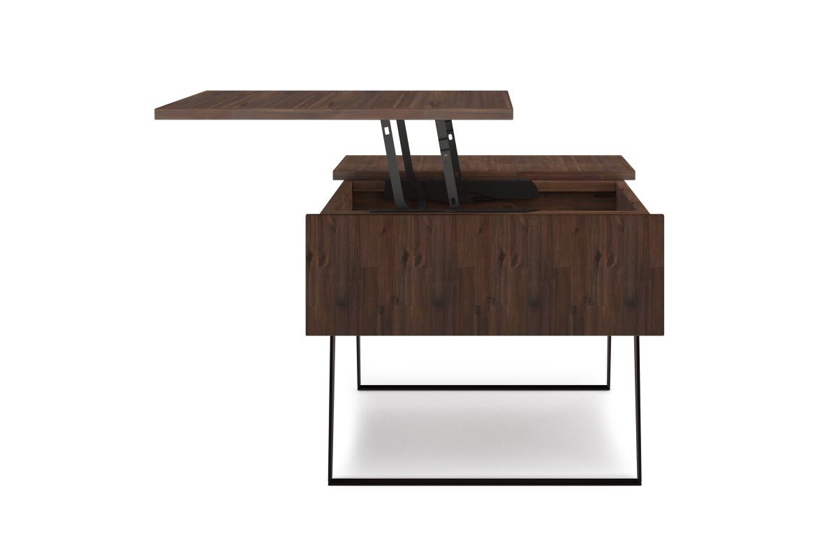 Style and convenience are at work in this uniquely functional Lowry Lift-Top Coffee Table. The table is handcrafted with a combination of metal and solid Acacia. The top lifts to reveal hidden storage, pulling toward you for the perfect surface to type on your laptop or eat in front of the television. The open compartment is ideal for stacking books or displaying decorative objects. The Lowry Coffee Table will bring an urban, industrial look to your living space. Assembly required.