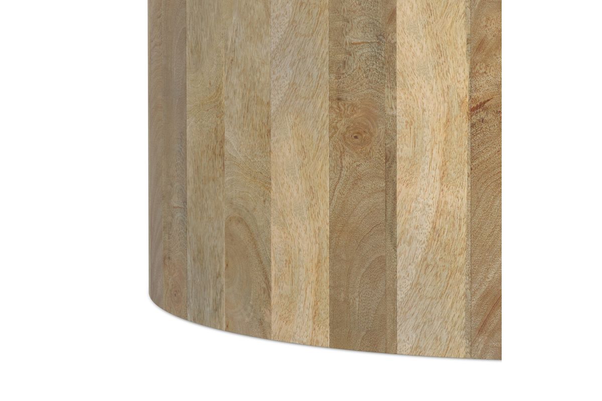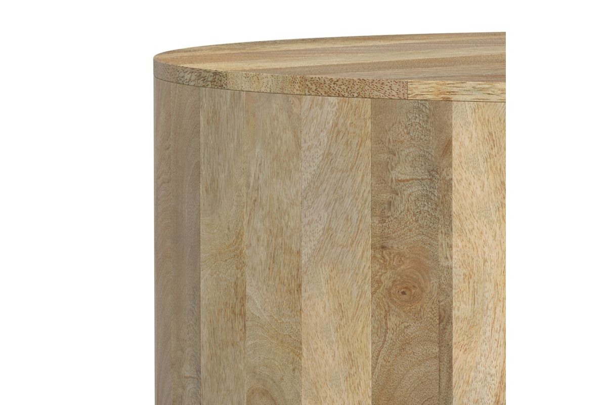 Add lightness and natural texture to your home with the Millbury Drum Coffee Table in Natural. Crafted from sustainably sourced mango wood, this table features a large, round design perfect for decorative displays or entertaining. The water-based, low-VOC finish highlights the wood's natural grain while being environmentally friendly. No assembly required.