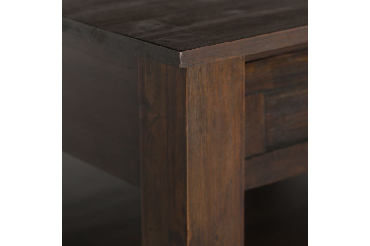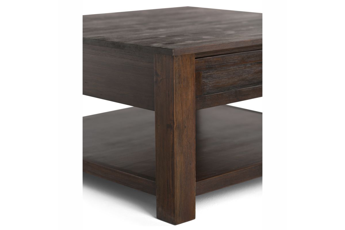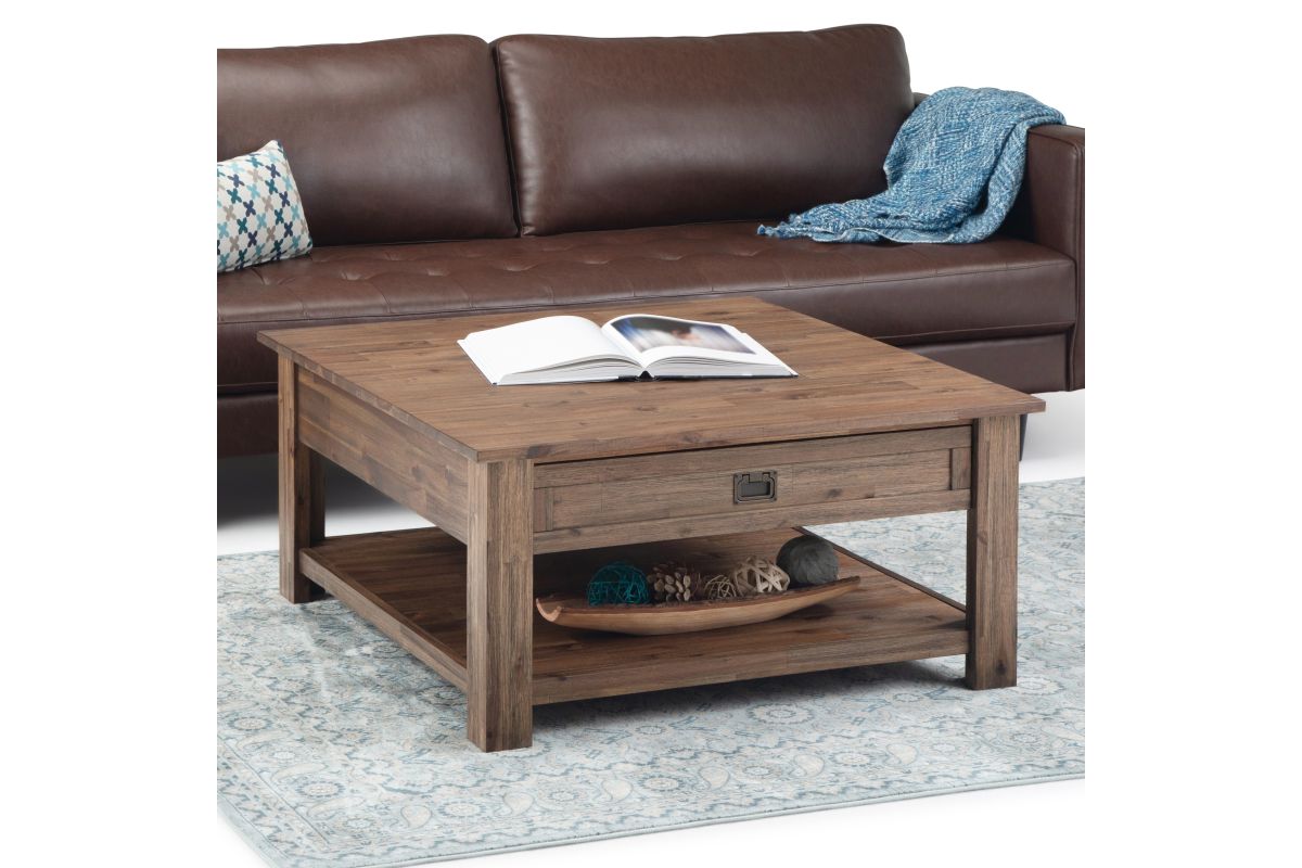 Looking for a rustic contemporary Coffee Table? Look no further than the Monroe Square Coffee Table. Its beautiful and distinct Acacia wood makes this table the perfect piece to become a focal point of your room. Two large drawers and open storage space beneath offers both practical and decorative storage options. The shaker style paneling and Antique Brass pulls are the finishing touches that make this table the right choice for your space. Assembly required.